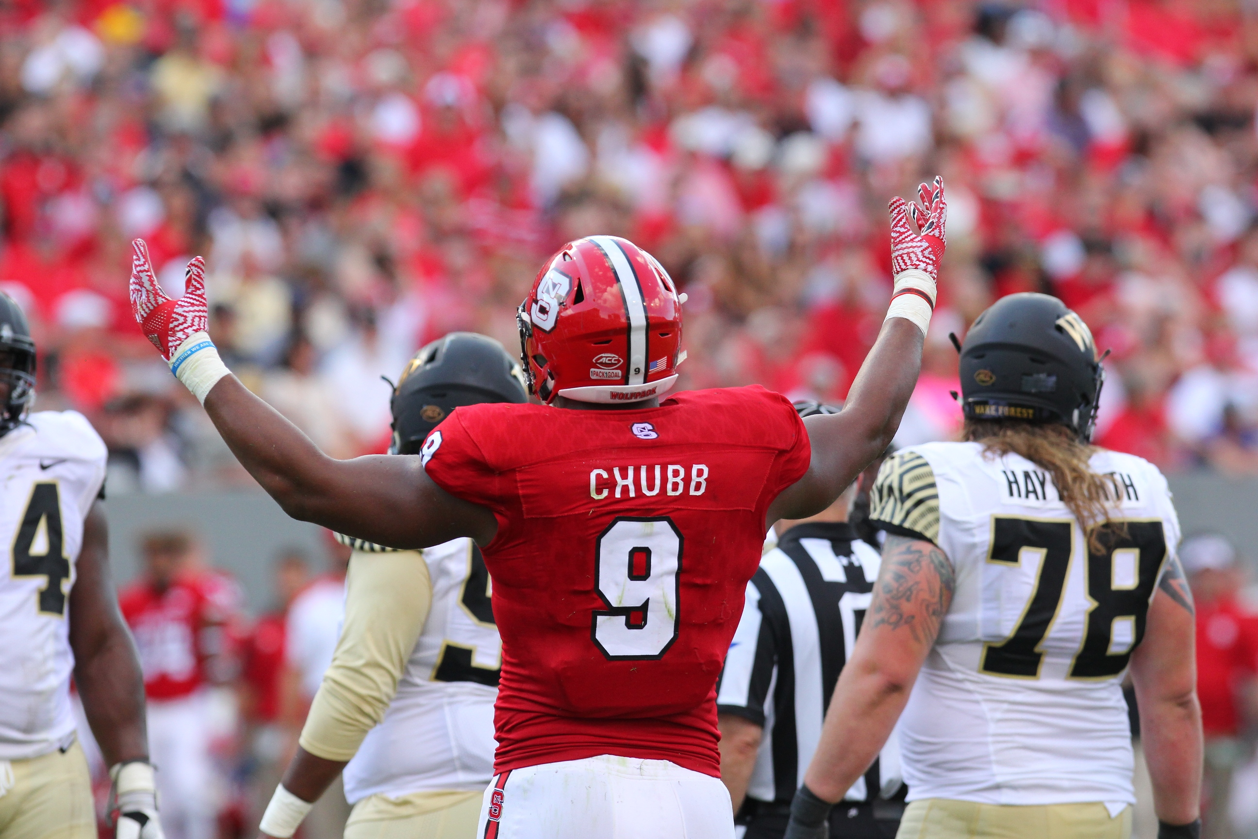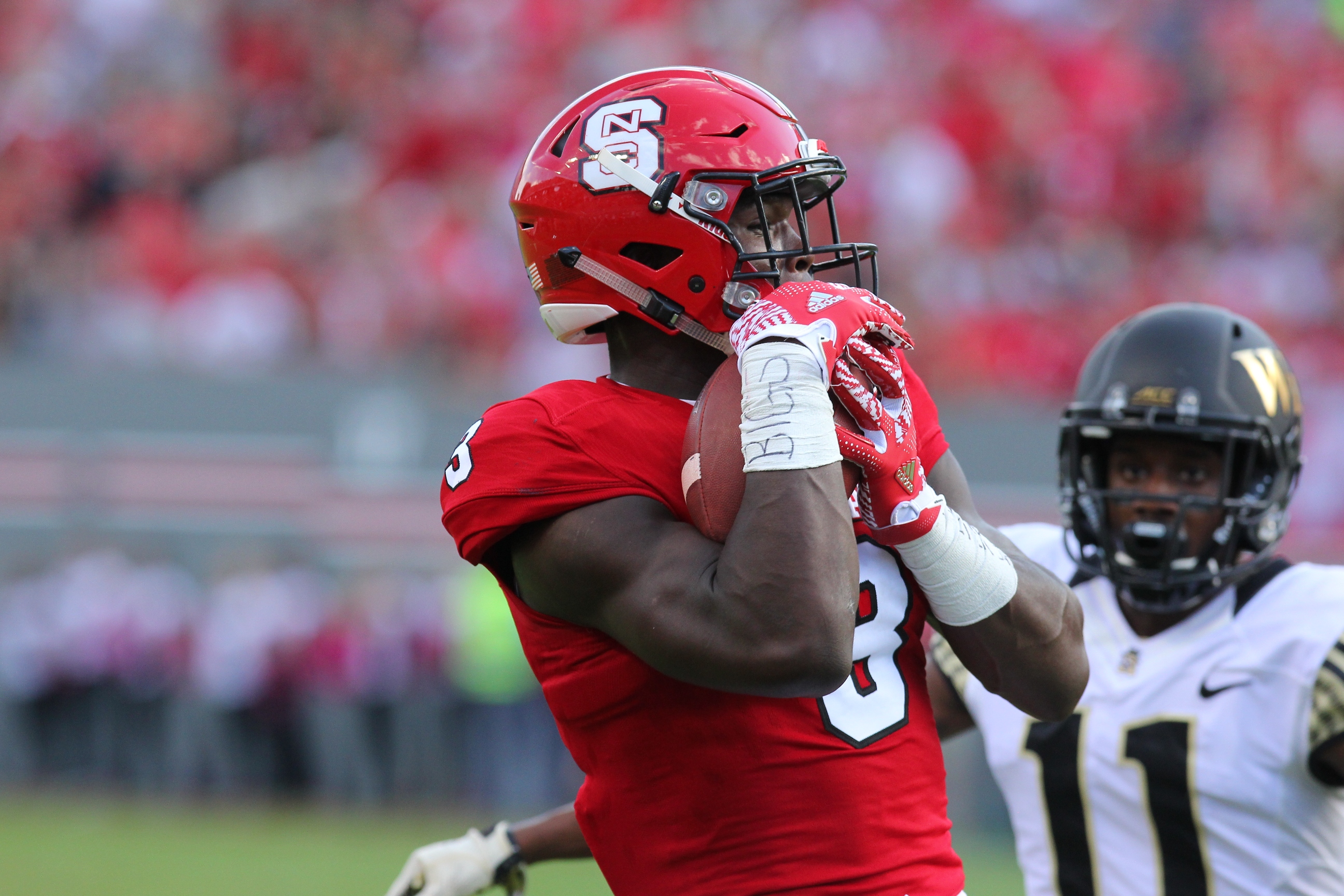 Jaylen Samuels’ 13-yard touchdown reception put the Wolfpack ahead 17-0 with 4:24 left in the opening quarter.