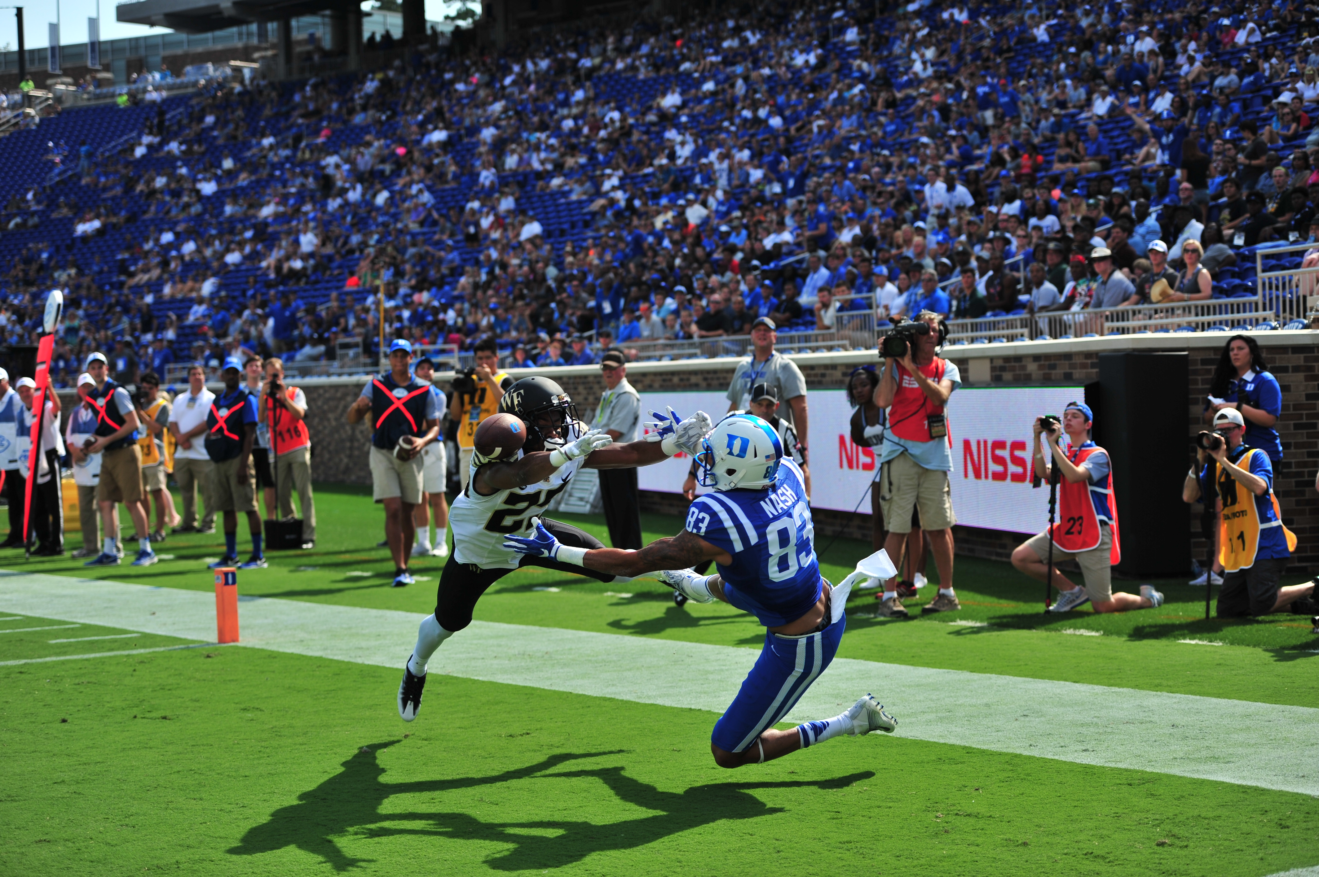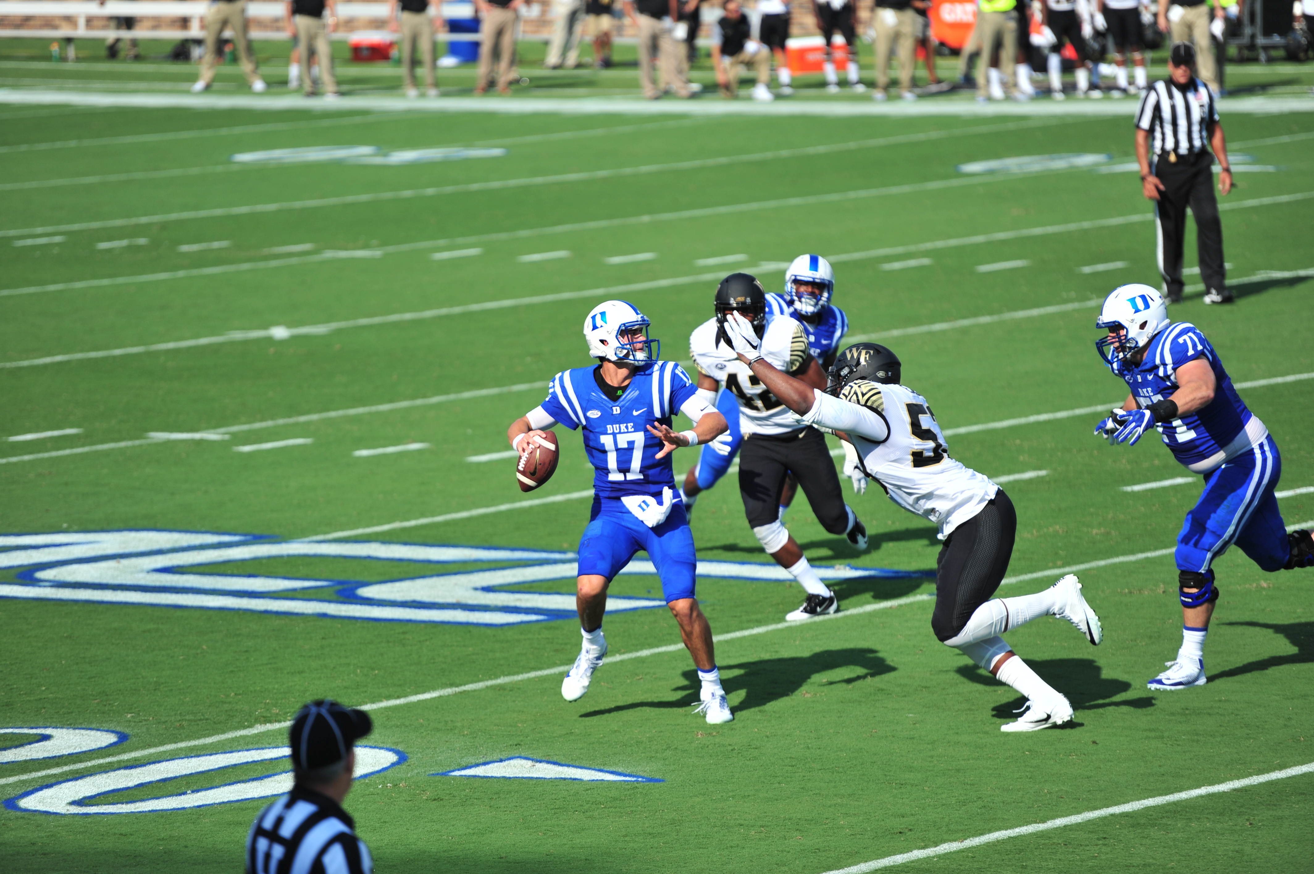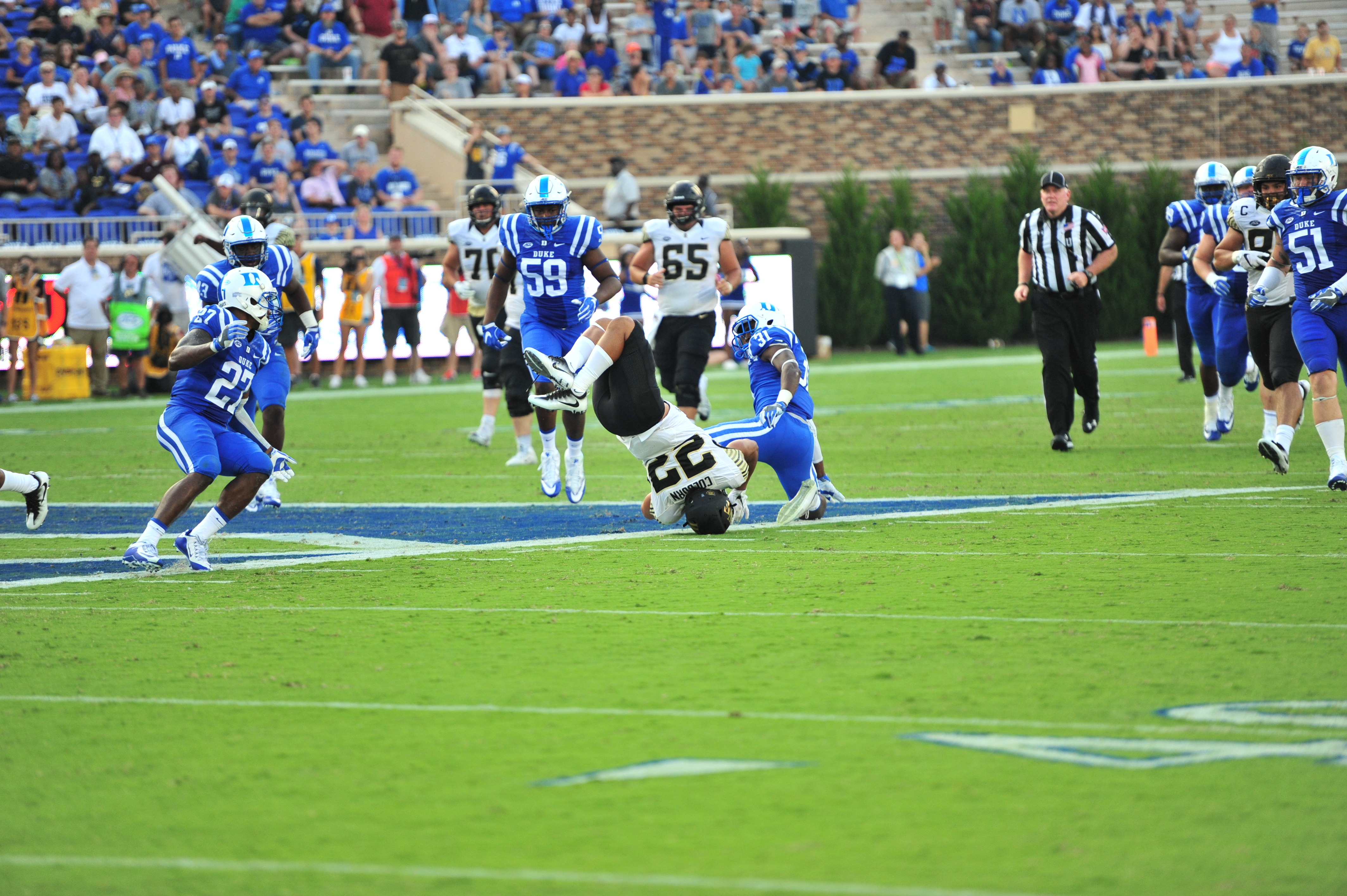 Seeing that the Demon Deacons defense wouldn’t budge early on, Blue Devils running backs Jela Duncan (9 carries, 25 yards) and Shawn Wilson (2 carries, 6 yards) were limited by play-calling decisions and could do little to help their team in this one.