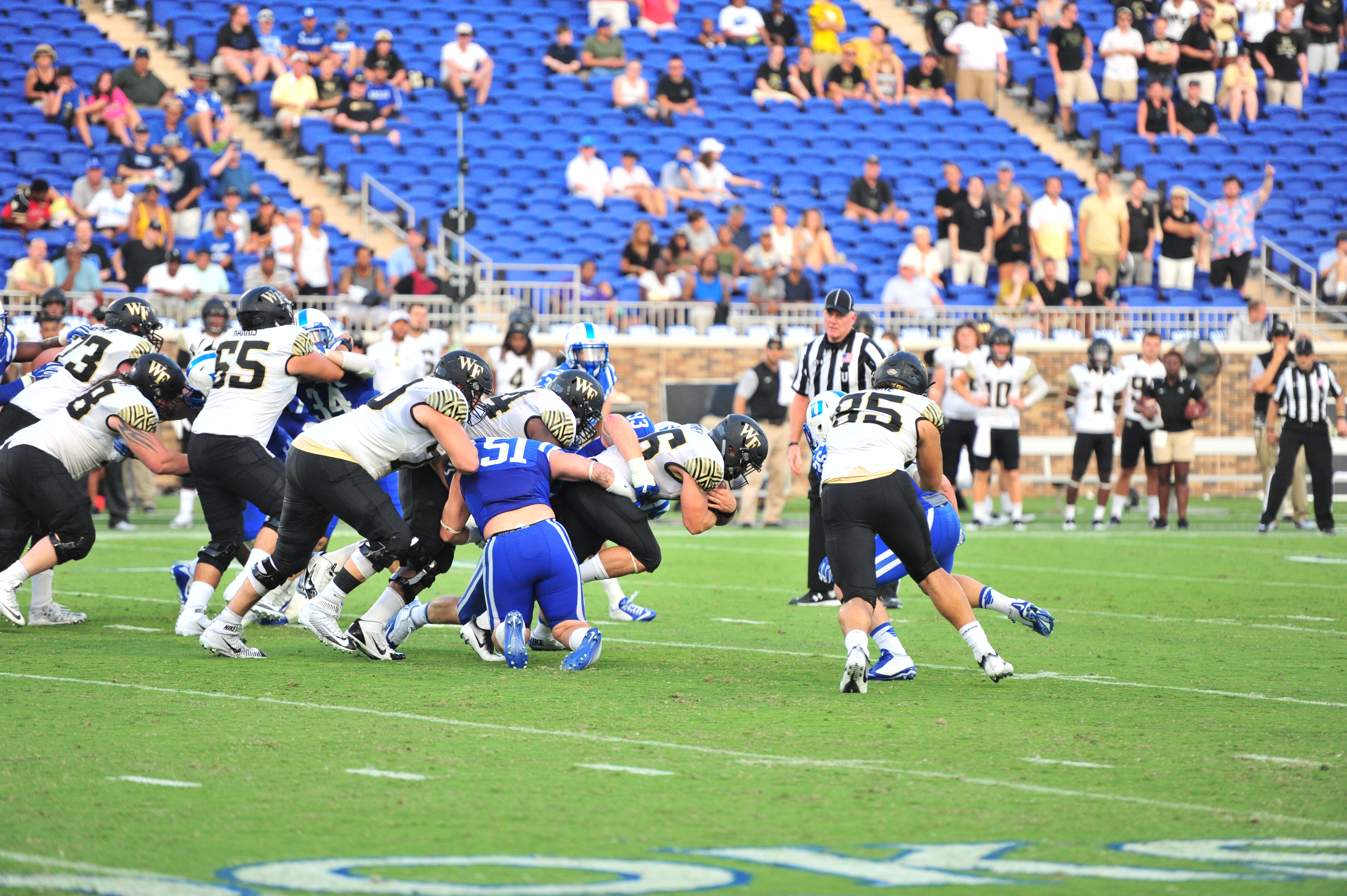 Wake Forest’s defense, led by Marquel Lee (10 tackles), Brad Watson (9 tackles), and Duke Ejiofor (7 tackles) solidified an effort that all but paralyzed the Duke run game and minimized scoring opportunities on passing completions made as Lee and Ejiofor contributed four of five sacks on Jones throughout the game.