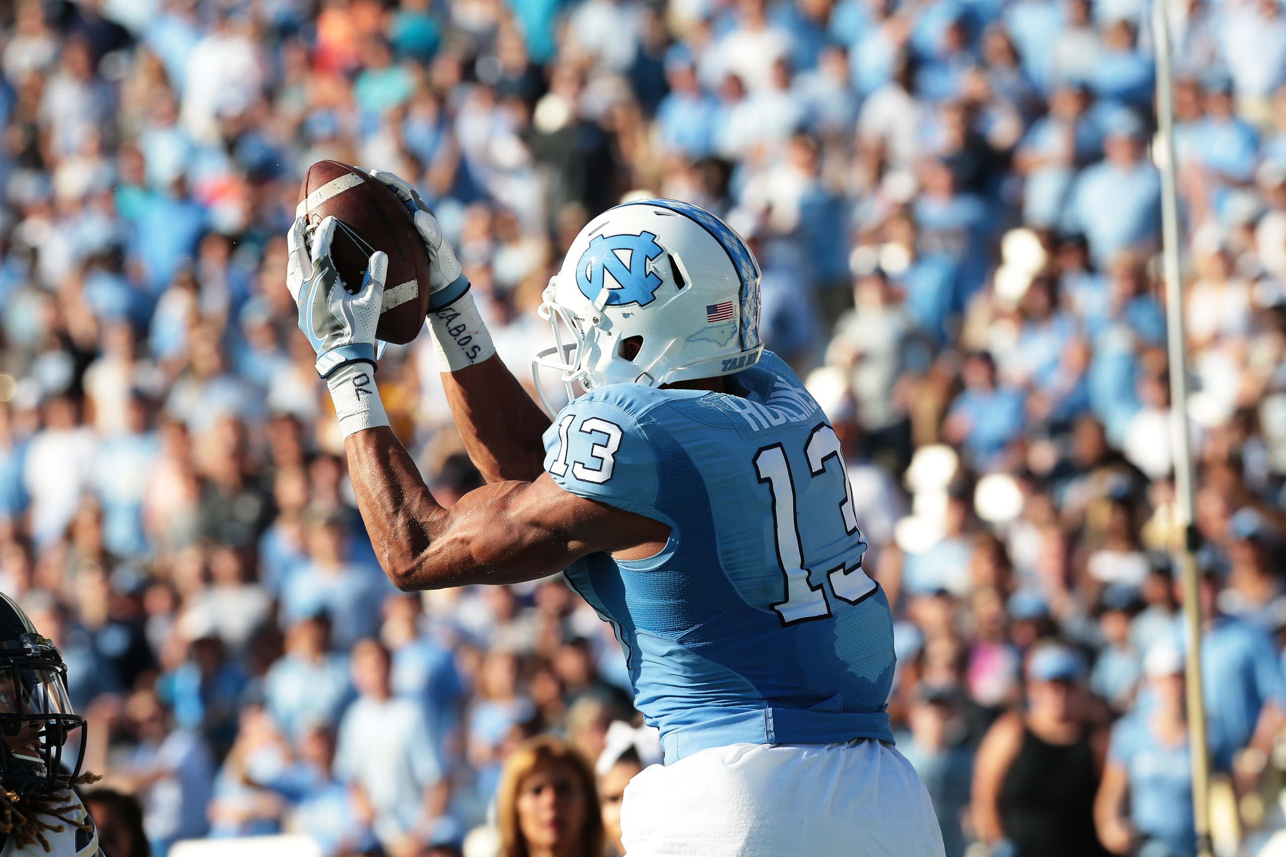 Bug Howard (6 catches, 66 yards) pulled in two scoring receptions, including the winner, while Ryan Switzer (16 catches, 208 yards), Austin Proehl (7 catches, 99 yards), and Mack Hollins (1 catch, 39 yards) made one touchdown catch apiece.