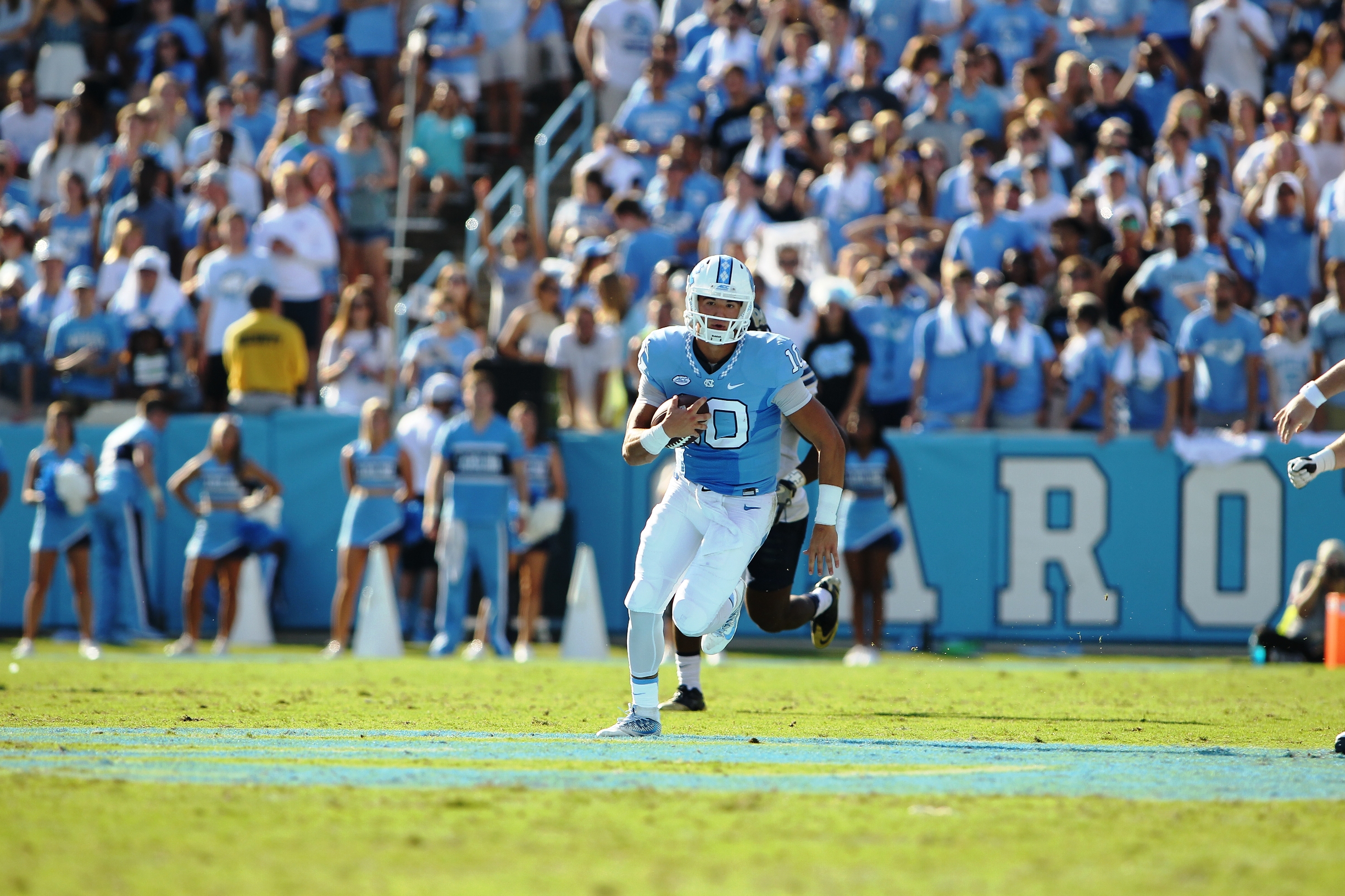 The Tar Heels countered by taking to the air as quarterback Mitch Trubisky had a record-setting day as he completed 35 of 46 passes for 453 yards, five touchdowns, and no interceptions.
