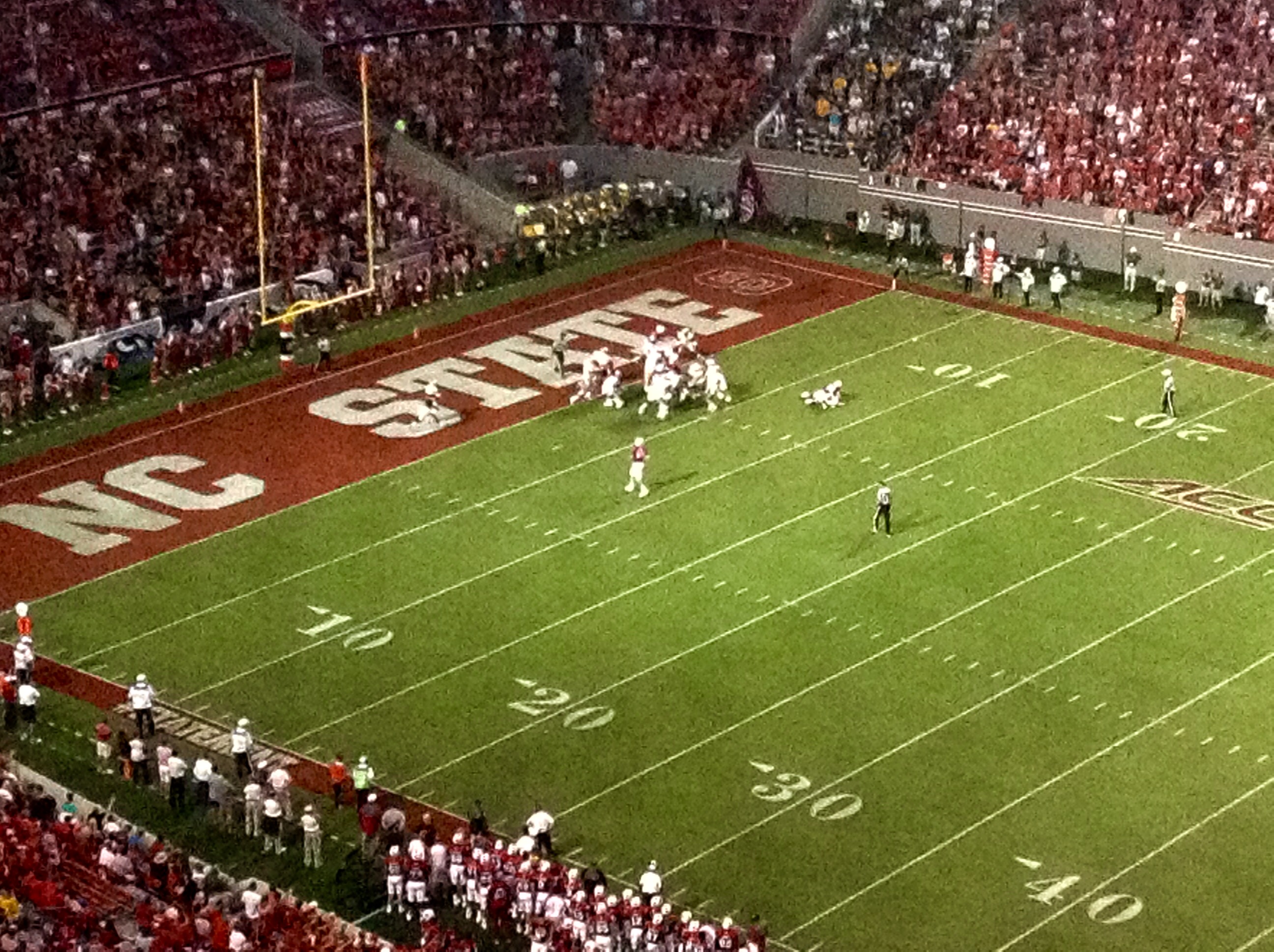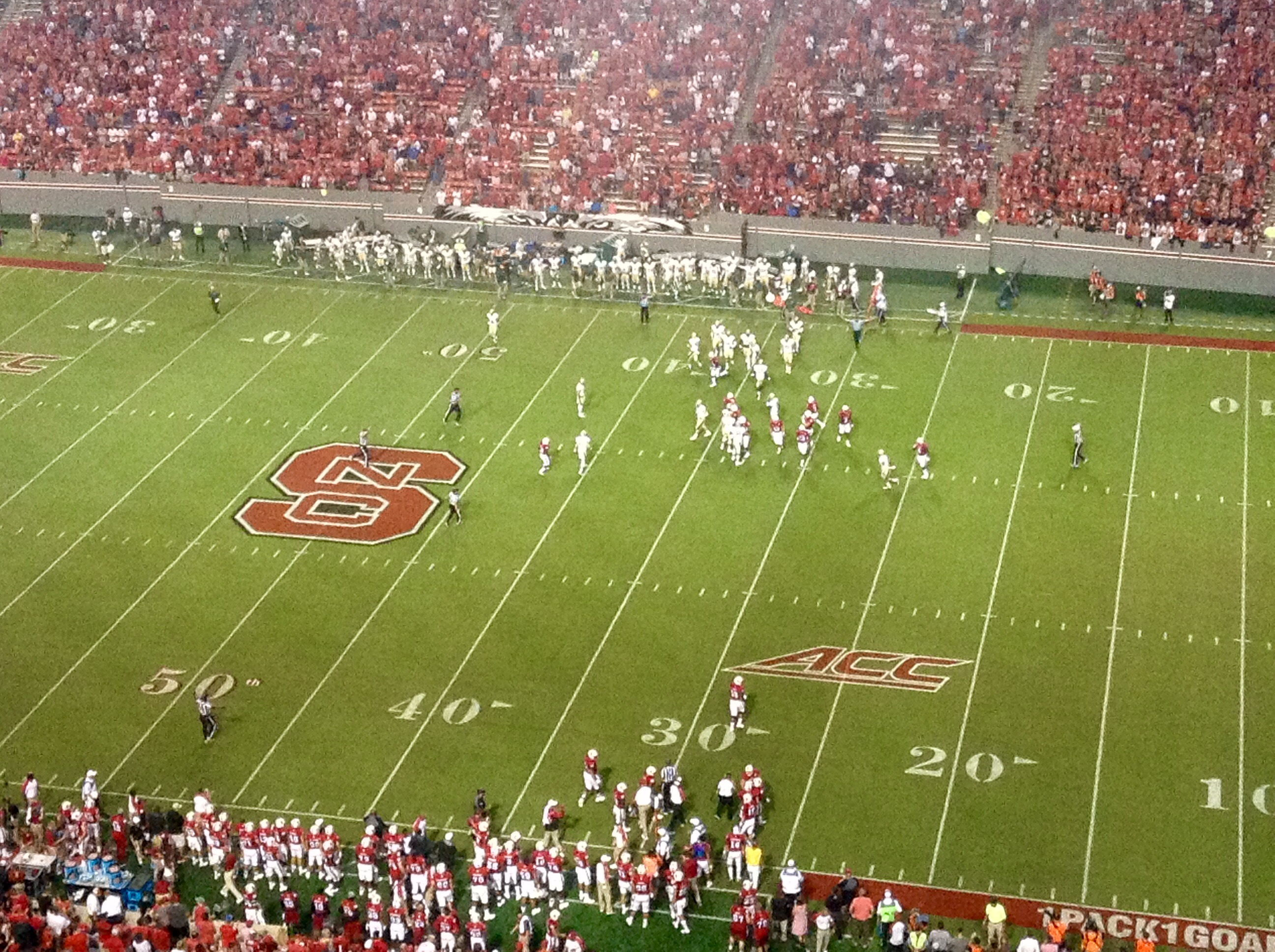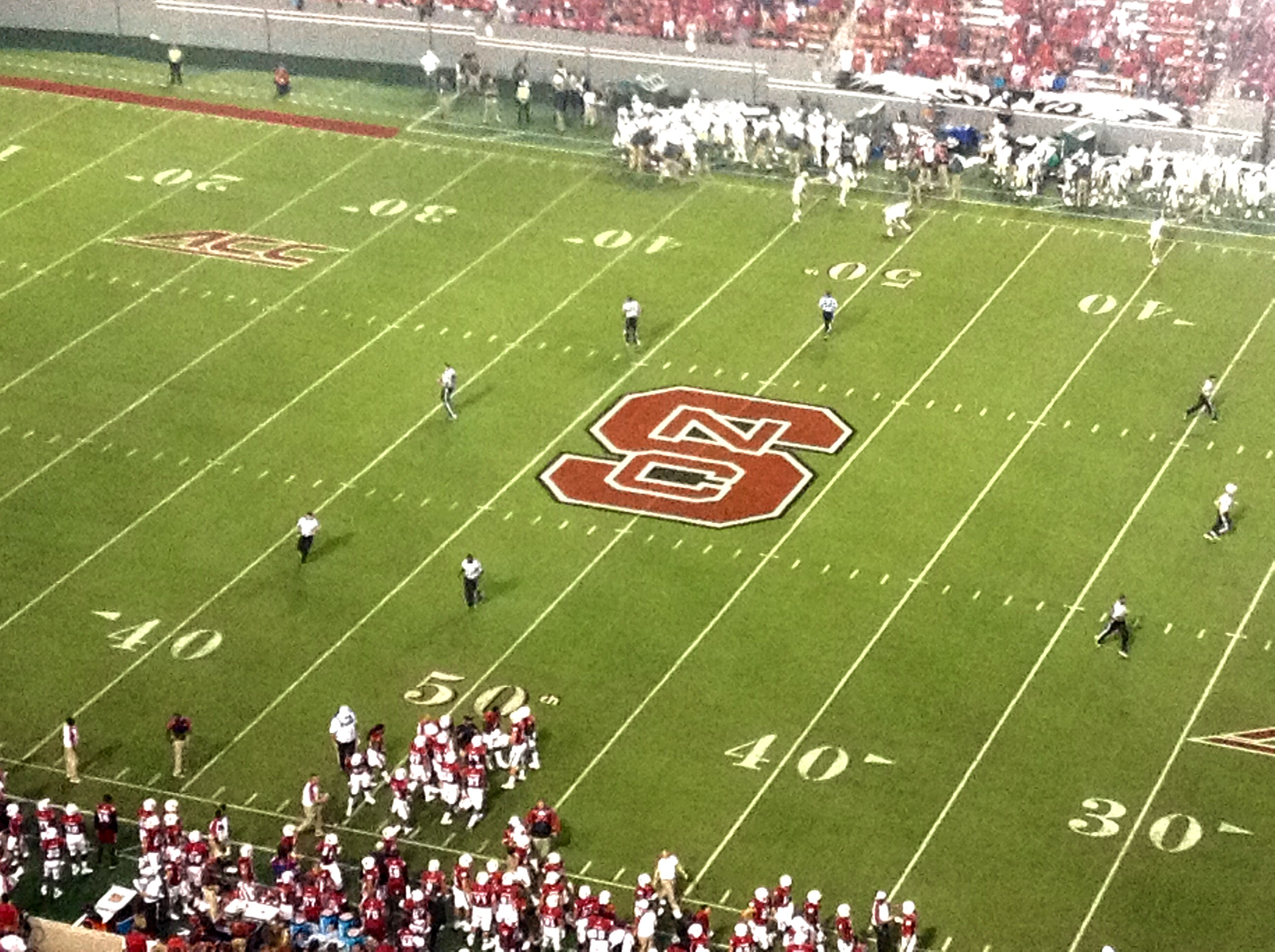 N.C. State led 28-7 at halftime, and had gained 306 yards to the Tribe’s 78.