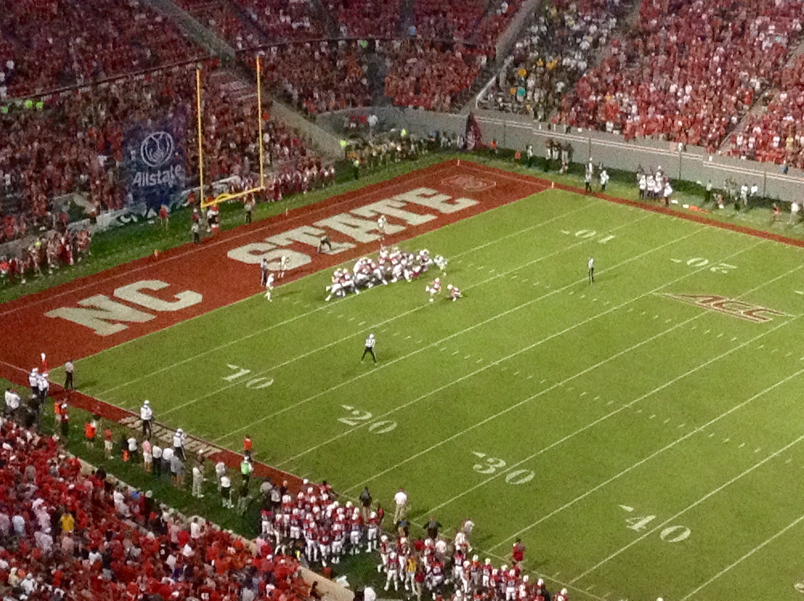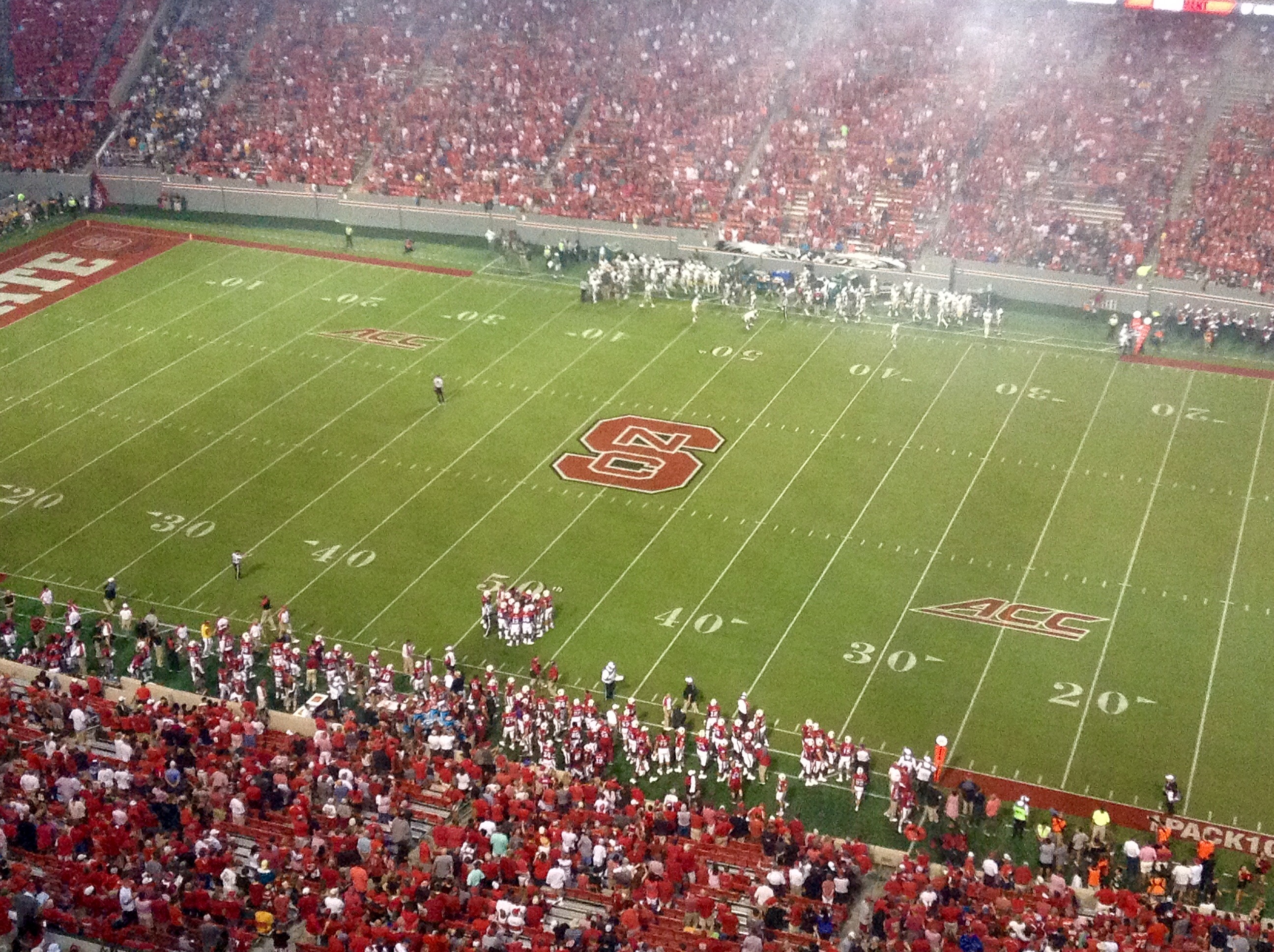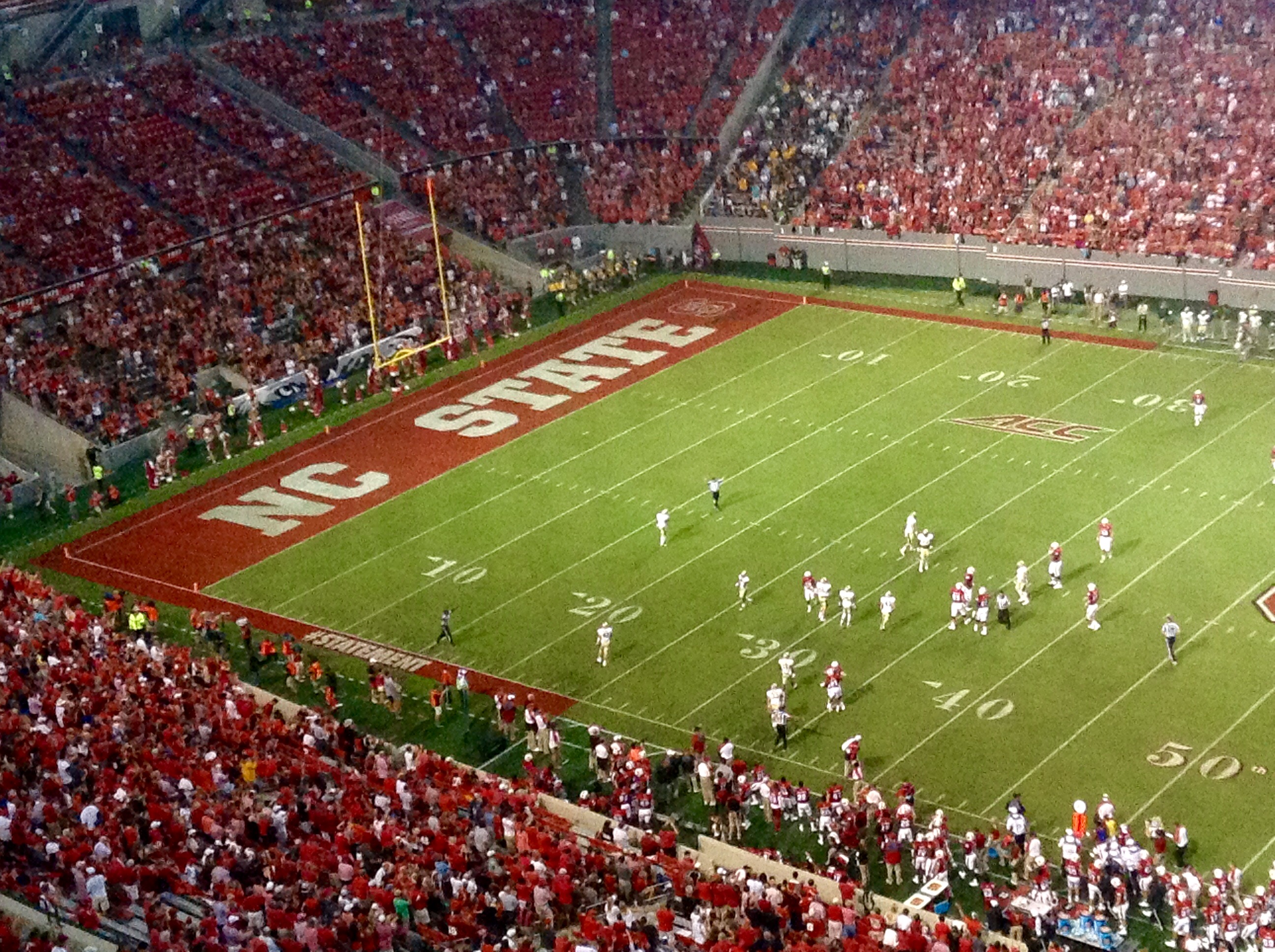 N.C. State led 28-7 at halftime, and had gained 306 yards to the Tribe’s 78.