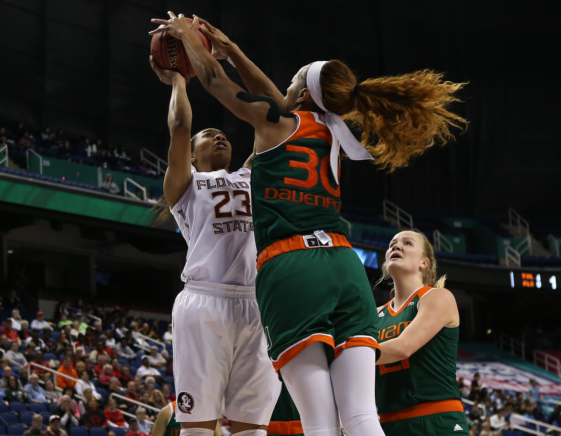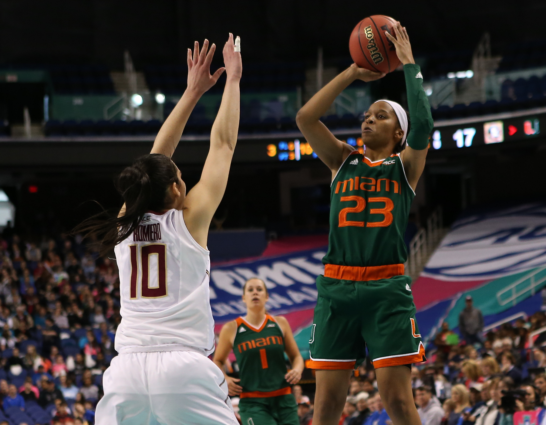 Miami’s Jessica Thomas (on what is needed to be successful for remainder of tournament):“Stay consistent. We’re playing really well. We’re rolling on offense. We’re doing big things on defense. These two games we’ve got to just keep it rolling, keep it going, stay consistent.”