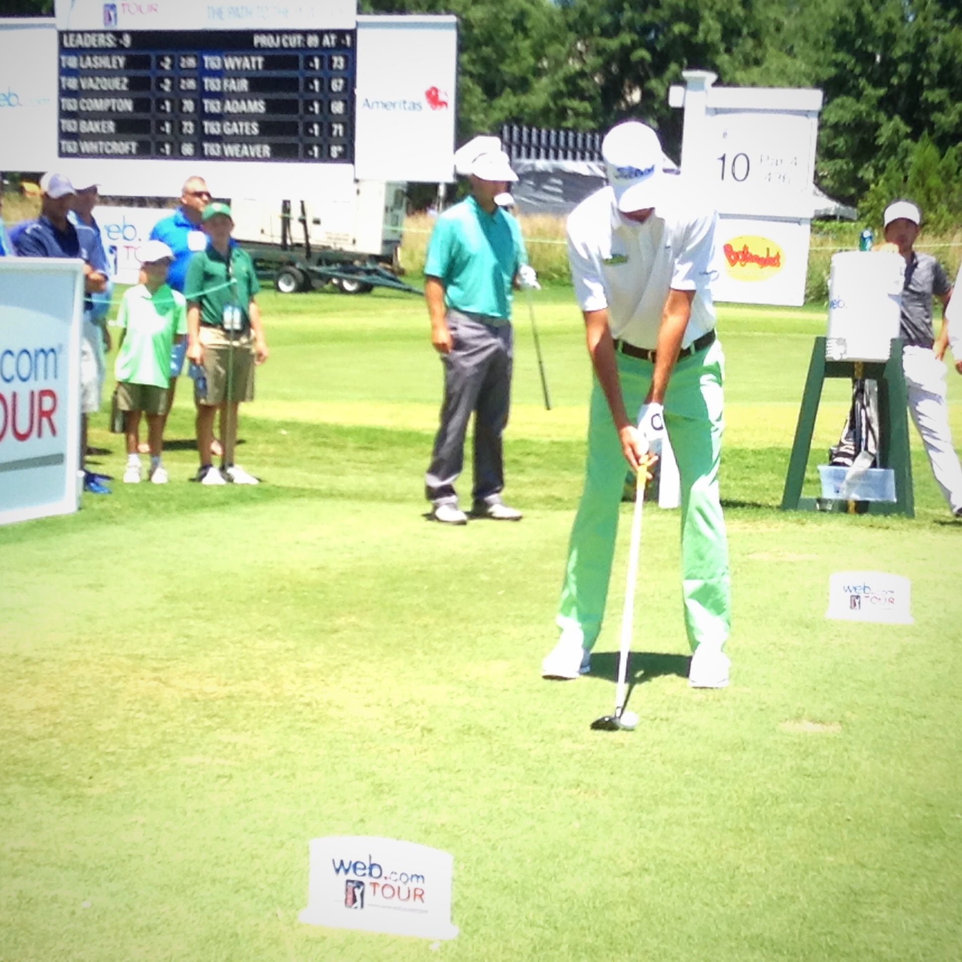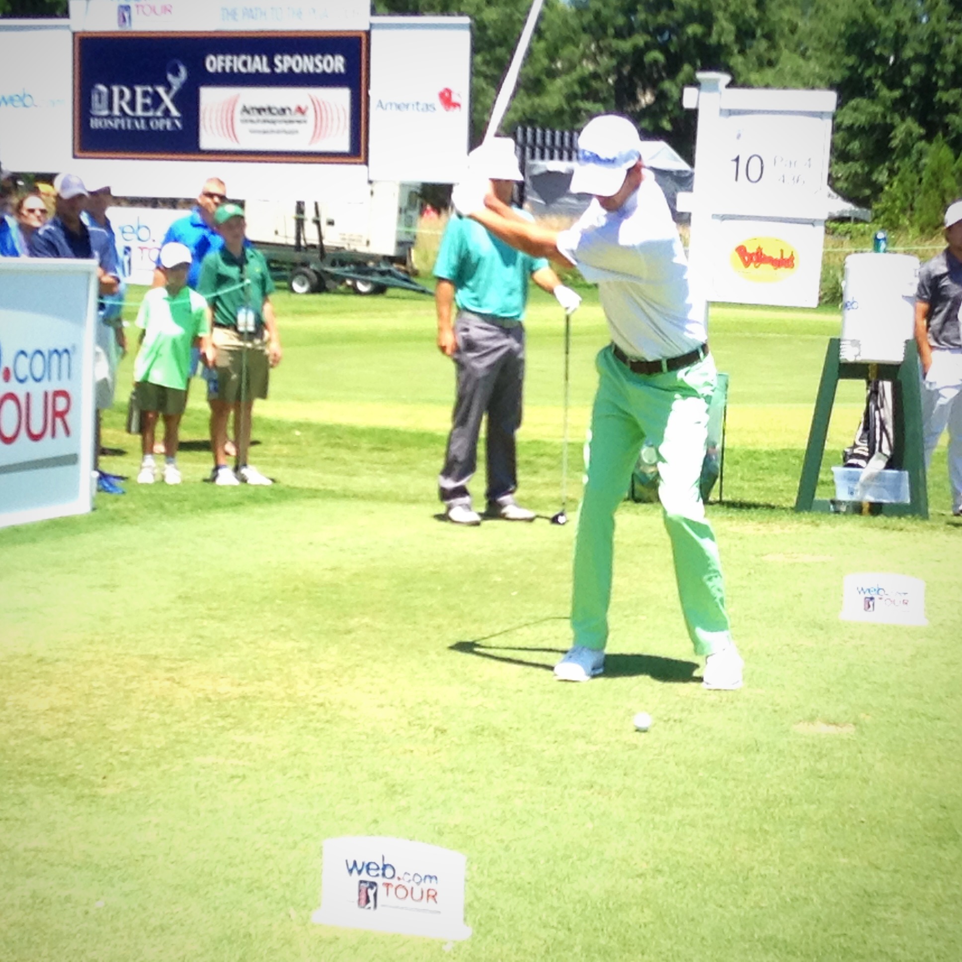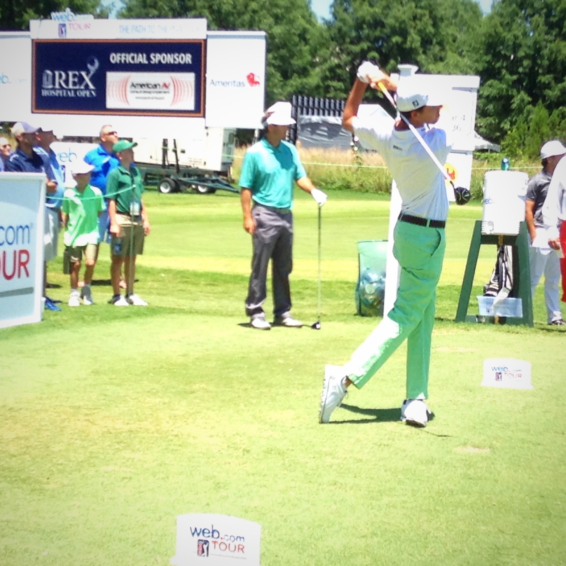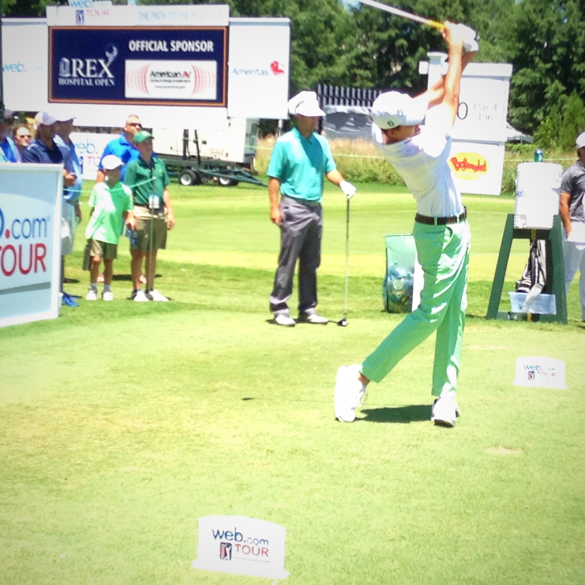 Notables: Raleigh native Carter Jenkins, having turned pro last year after his junior year at UNC, and playing on a sponsor exemption, made the cut (-1) after carding a 2-under par 69 finish on the day…Trailing Carballo with low rounds on the day were Rick Lamb and Rick Cochran III who both carded 6-under par 65s to sit tied for 16th spot…After dropping six birdies on his back nine, Wade Binfield held the overall lead, playing at -7 for the day, but a four-putt on his final hole, the par-5 ninth, dropped him to T5 overall…Local college alums Albin Choi (N.C. State), and Wes Roach (Duke) missed the cut at even-par, in addition to Brad Fritsch (Campbell) who missed it at 2-over.