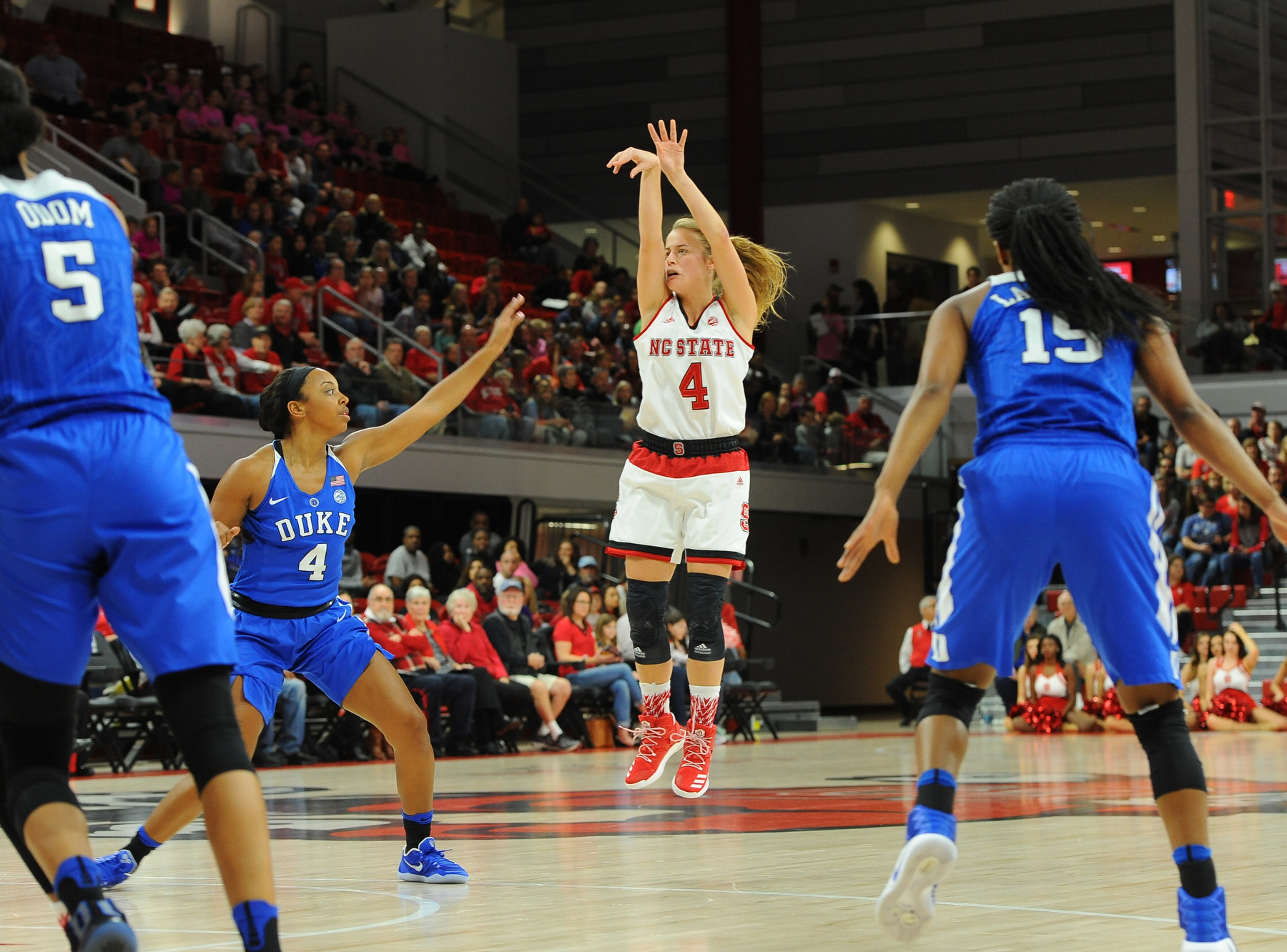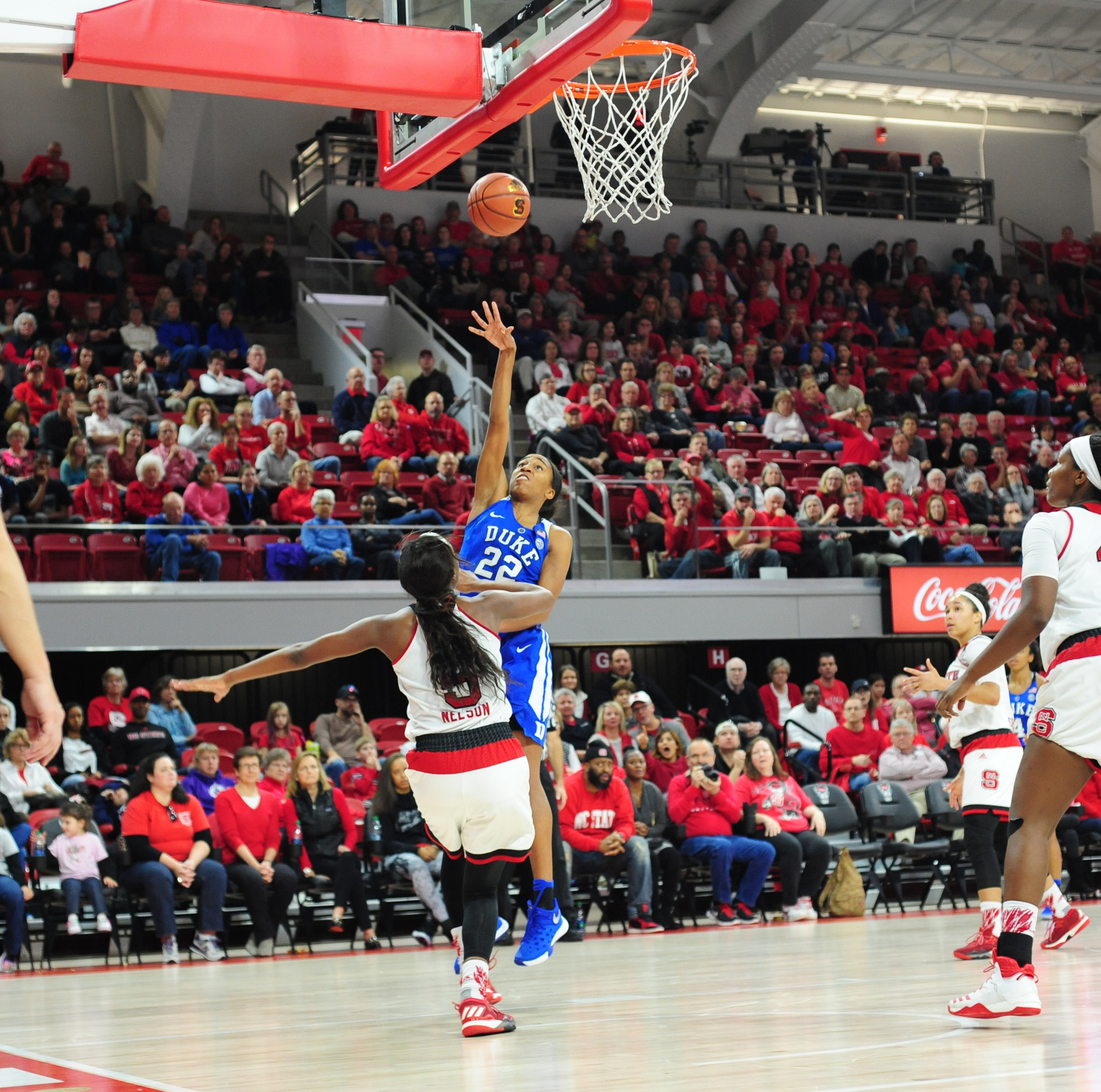 After Nelson put the Wolfpack ahead, the Blue Devils answered back with a layup from Faith Suggs to lead 48-47.