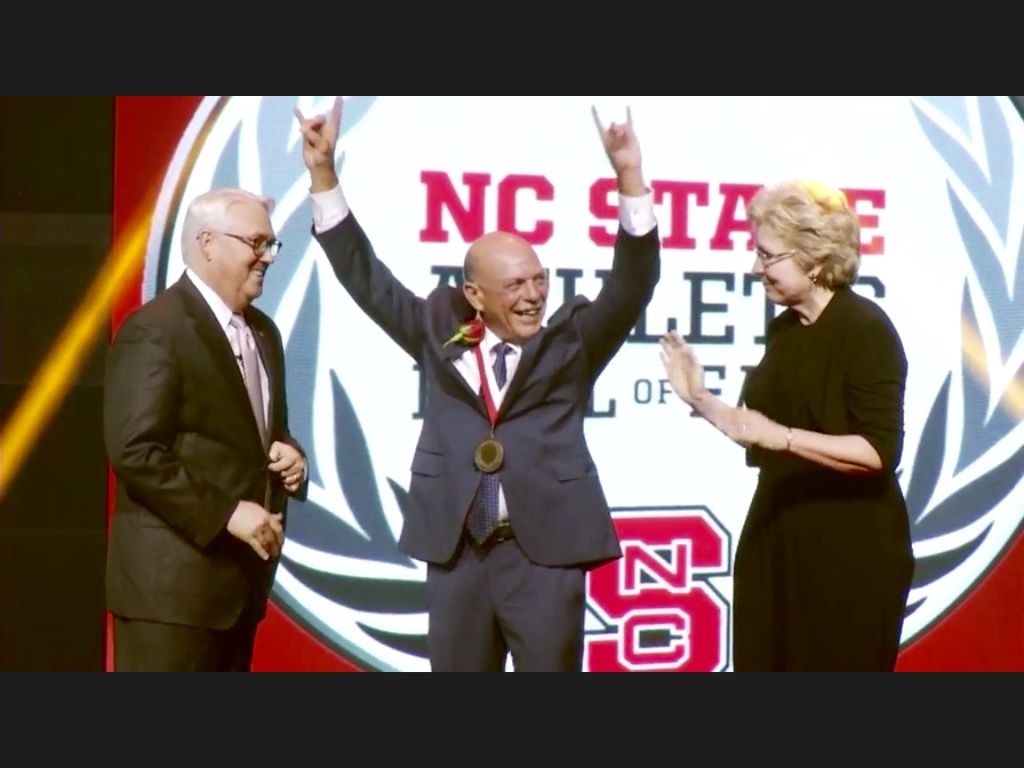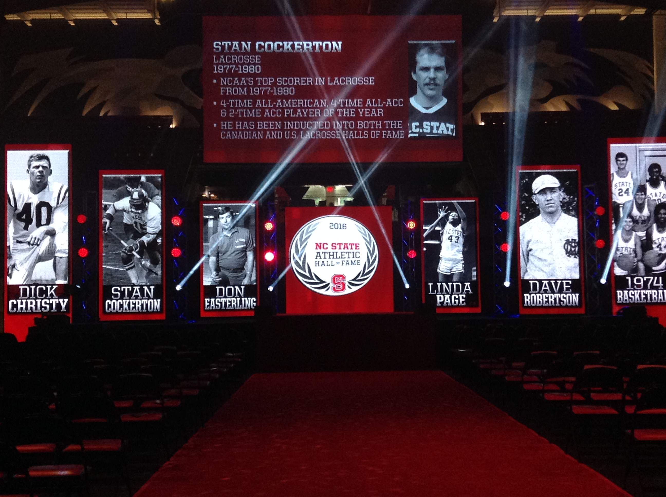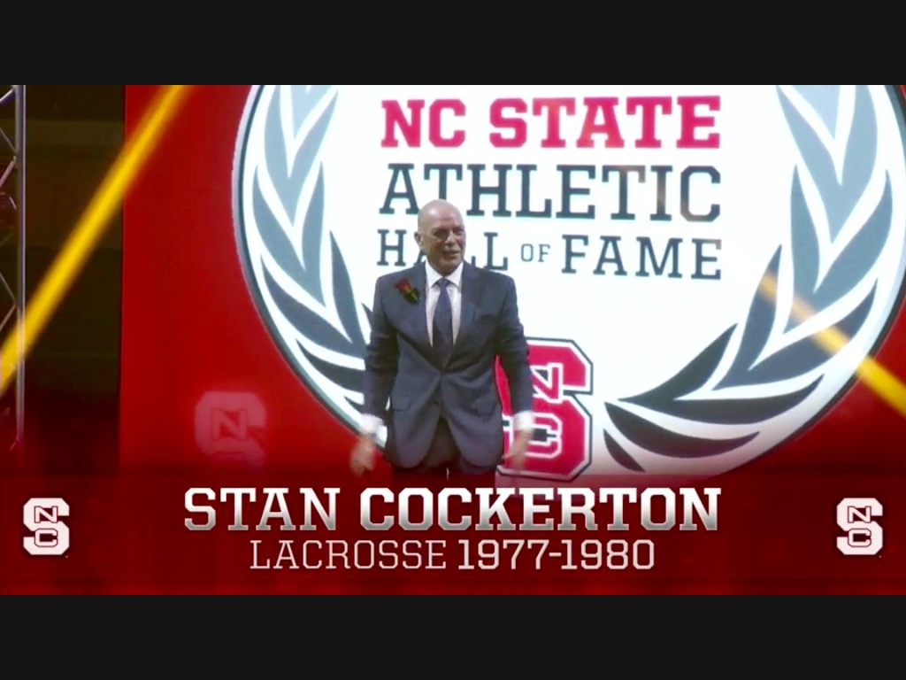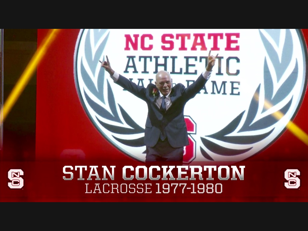 RALEIGH, N.C. – Legendary international lacrosse player and N.C. State Wolfpack four-time All-American Stan Cockerton raised his arms and hands high, flashing the Wolfpack sign, and showed his appreciation for his alma mater when he was inducted into the school’s Athletic Hall of Fame at Reynolds Coliseum on Friday.