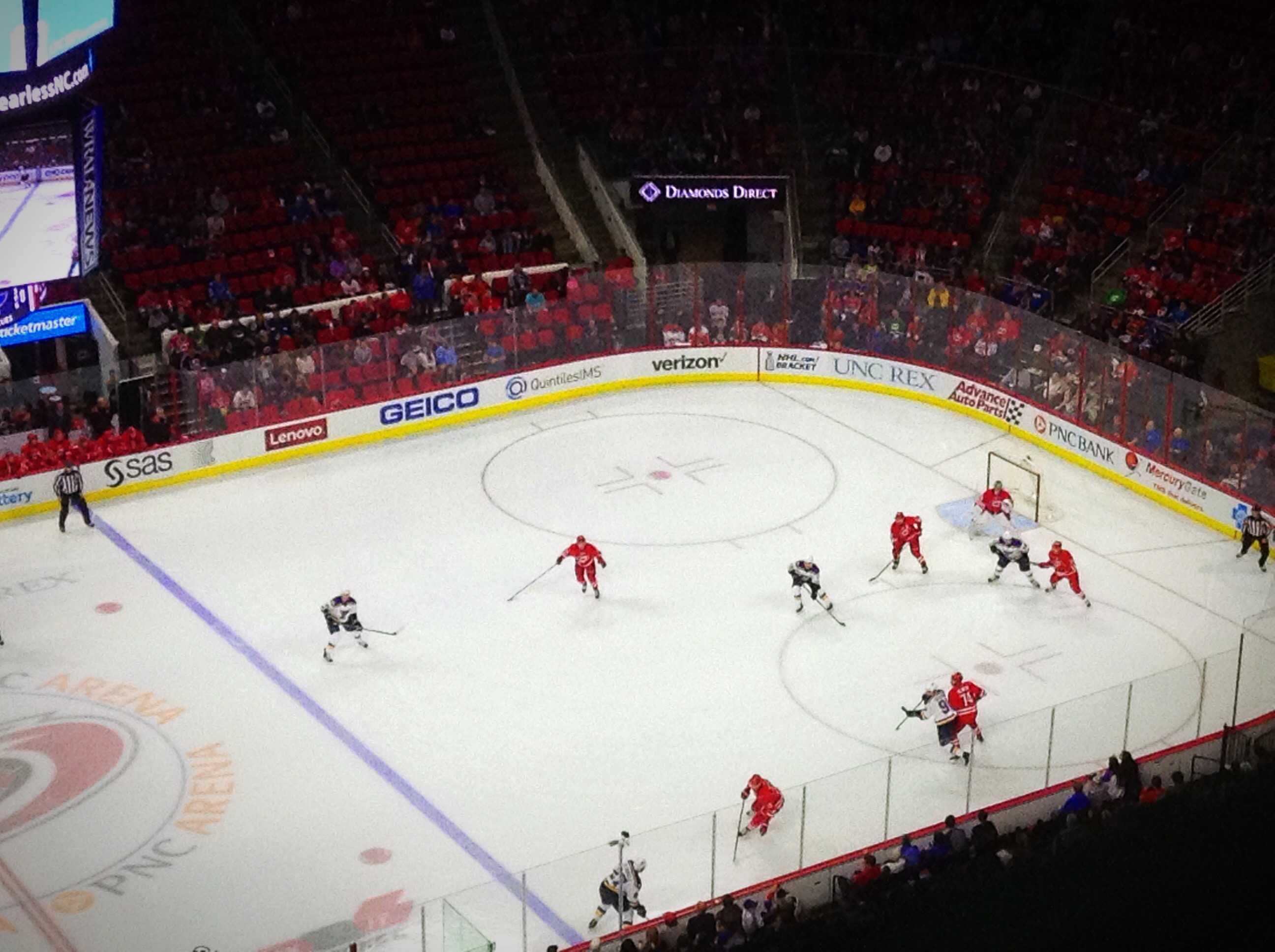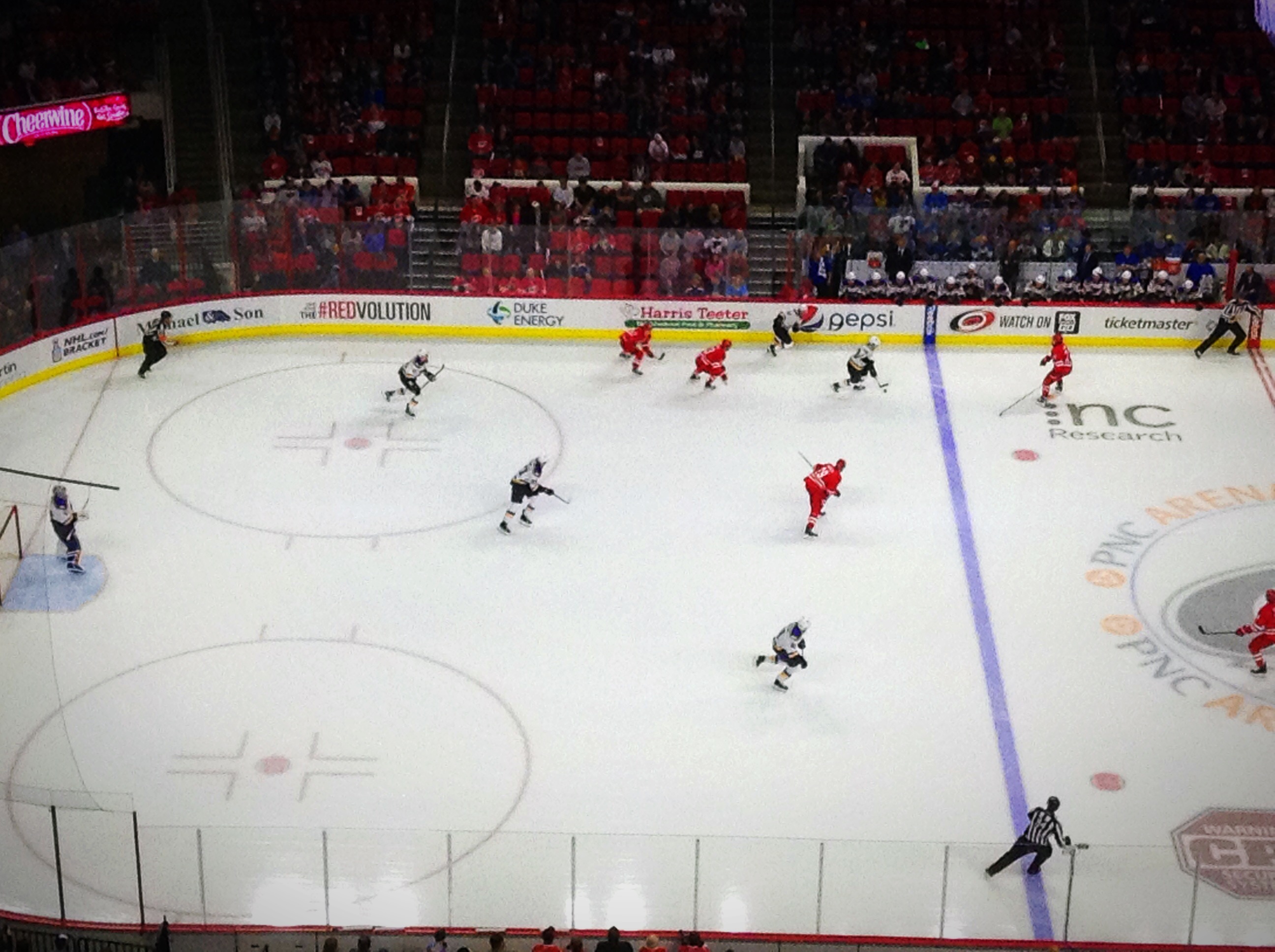 Playing its last regular-season home game at PNC Arena, Carolina put forth a much stronger effort in front of its home crowd compared to recent 3-0 losses to the New York Islanders and Dallas Stars.