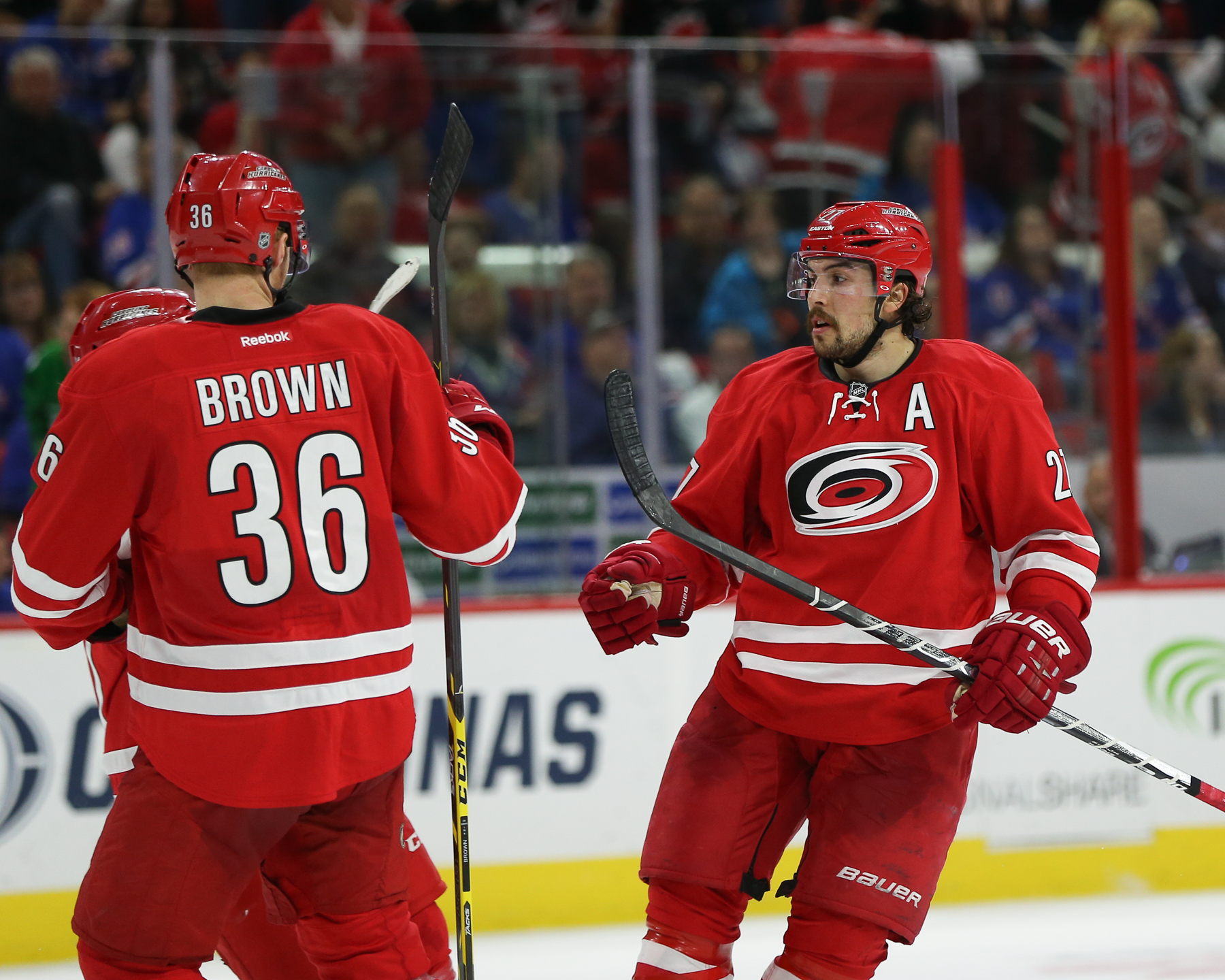 Carolina didn’t relent and Brown soon scored his first career NHL goal after he outskated New York defenseman Keith Yandle to a hard dump-in off the right corner glass from Jeff Skinner.