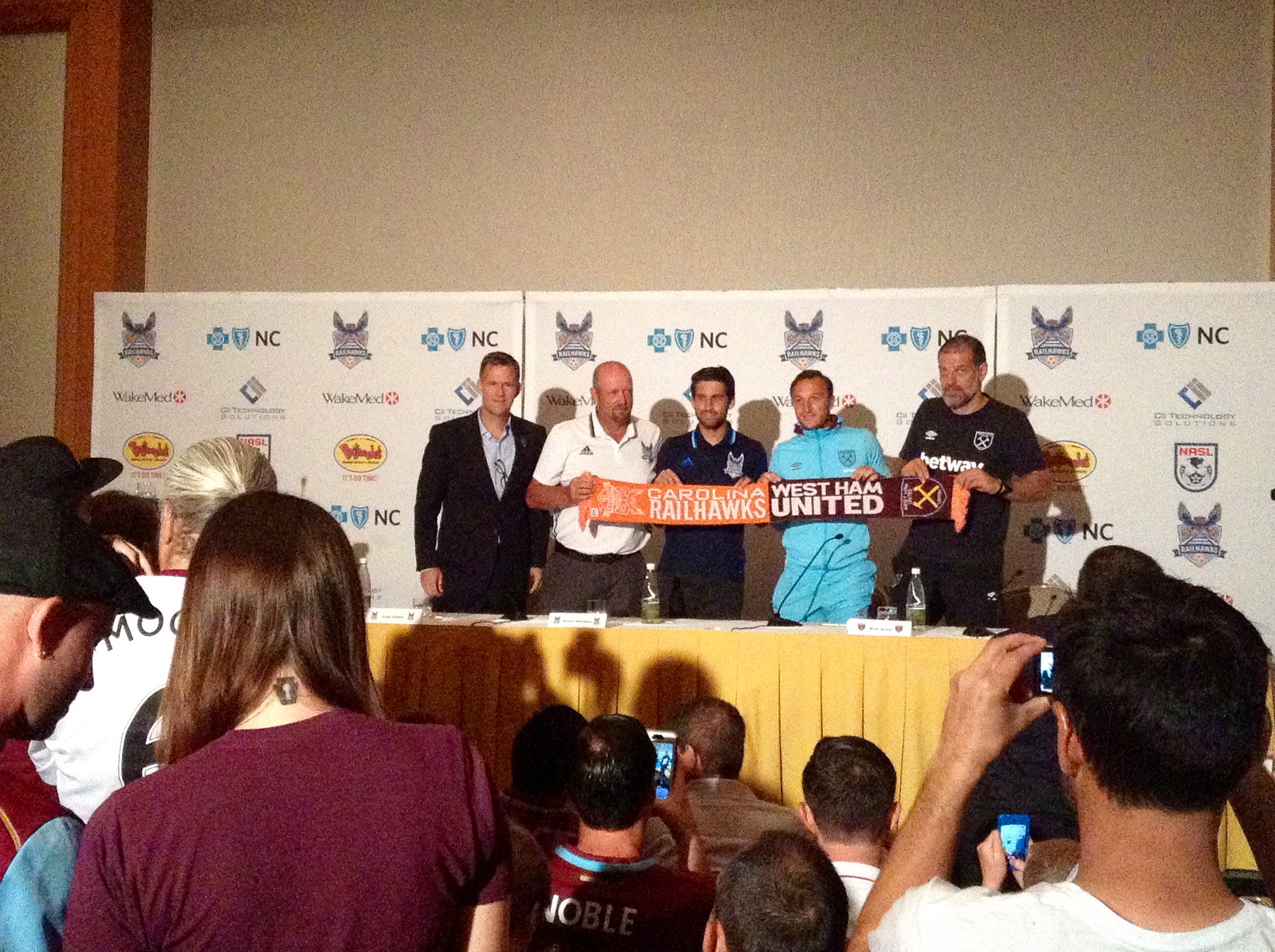 Following a 3-0 loss to the Seattle Sounders of Major League Soccer (MLS) last Tuesday, the Hammers flew into RDU on Saturday, and conducted a training session while the RailHawks were hosting the Rowdies on the adjacent practice field.