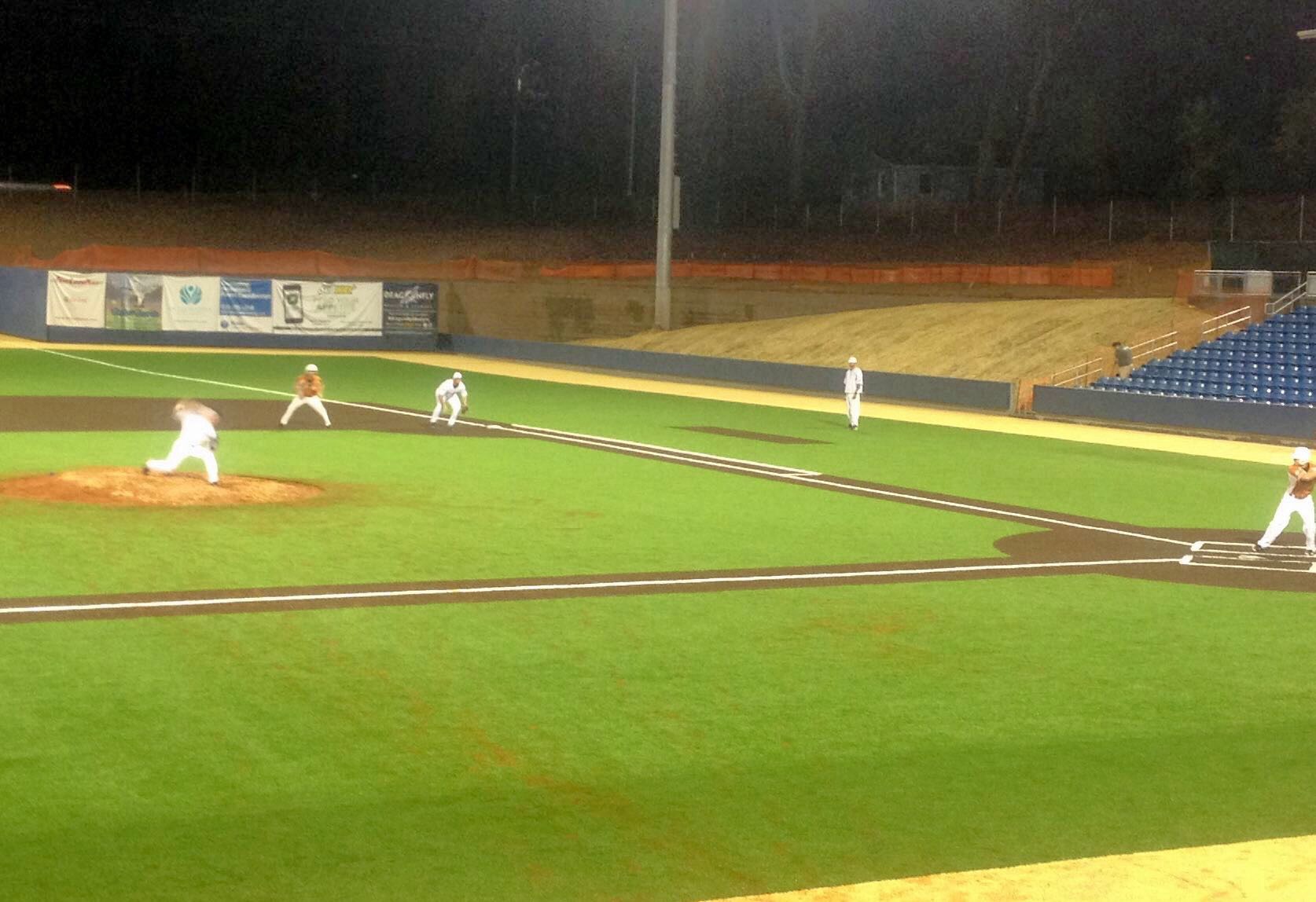 With only the pitcher’s mound to tend in order to restart play, both teams waited for the heavier portion of the weather system to pass before continuing the game at 9:15 p.m.