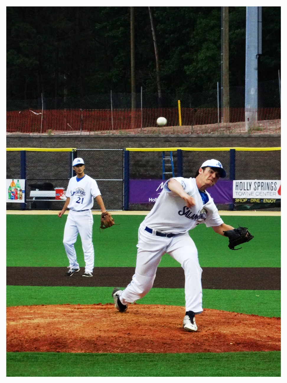 For starting pitcher Andrew Wantz (1 IP, 1 R, 1 SO), his time on the mound was cut short when it appeared that the UNC-Greensboro product from Holly Springs strained his back, and was replaced after walking a Sharks batter, Joe Bialkowski, to start the second inning.