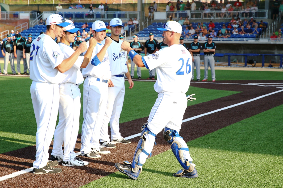 His single to right field side brought Sconzo home and sent the entire Salamanders team spilling onto the field to celebrate while the fans did the same in the stands.