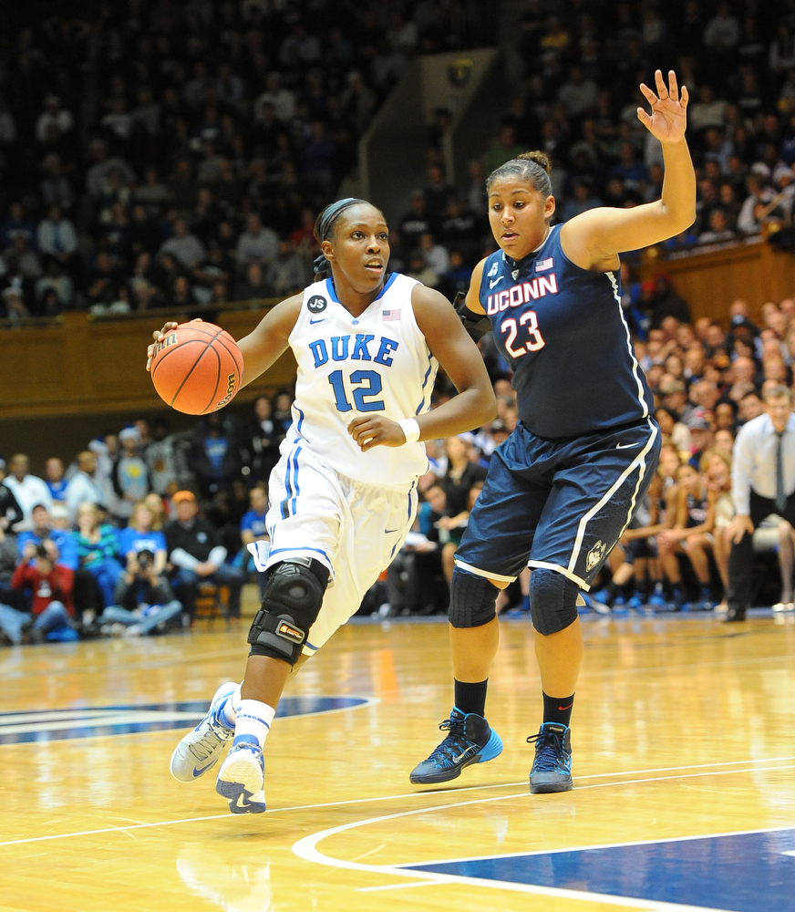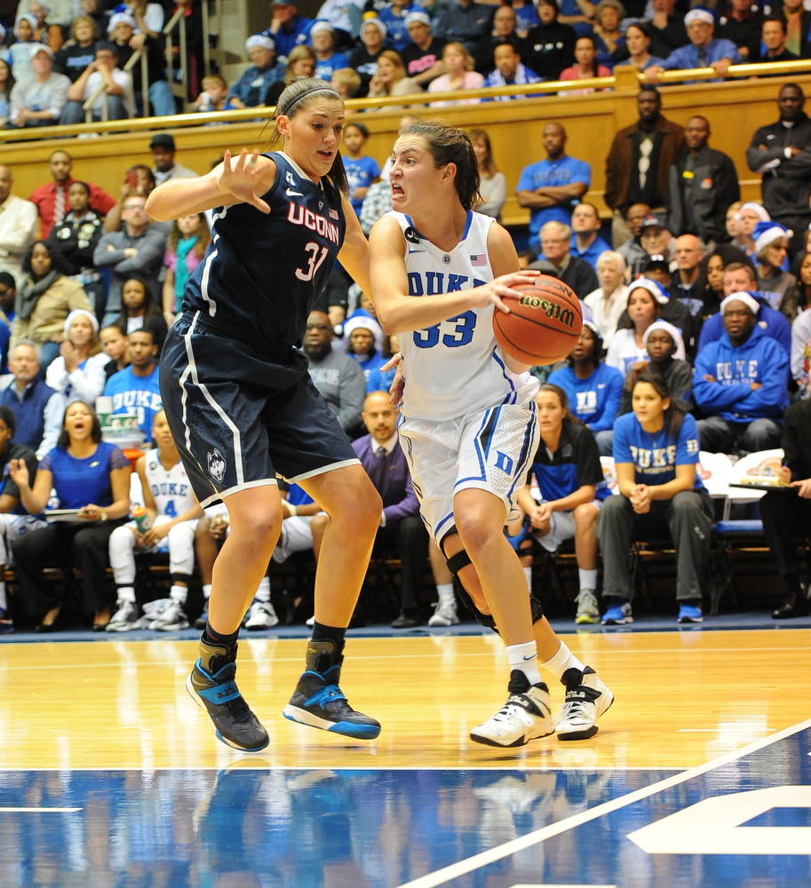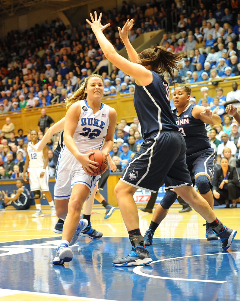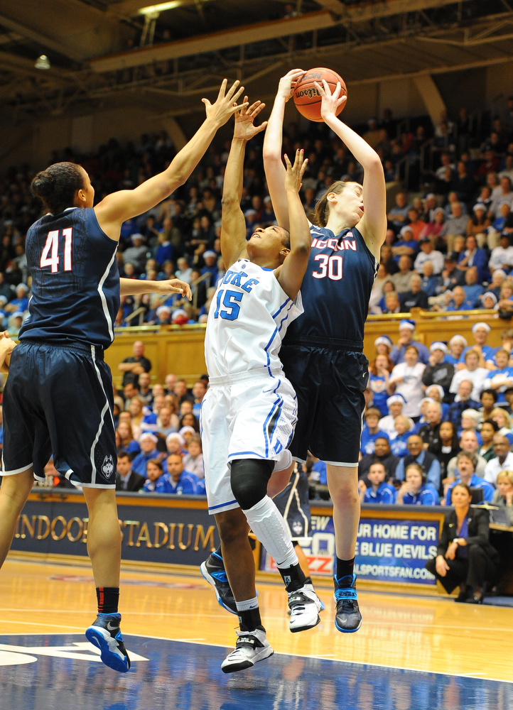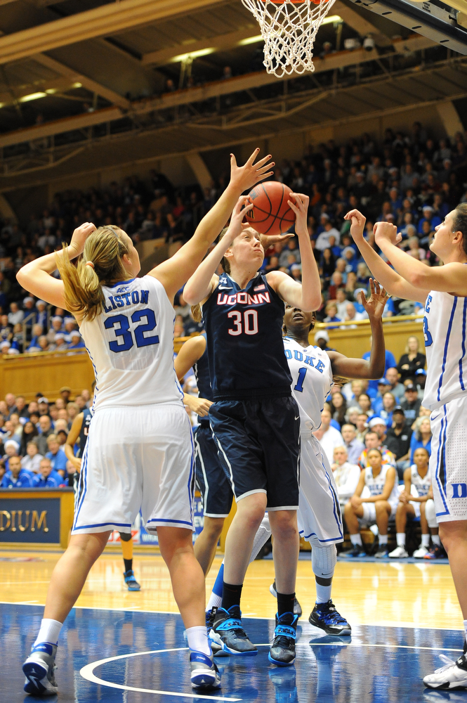 Even with four players finishing with double-digit scoring totals – Chelsea Gray (13 points, 4 rebounds), Haley Peters (11 points, 8 rebounds), Tricia Liston (10 points, 3 rebounds), Alexis Jones (10 points, 4 rebounds) – Duke didn’t play as aggressively as it needed to make a serious run at the Huskies.