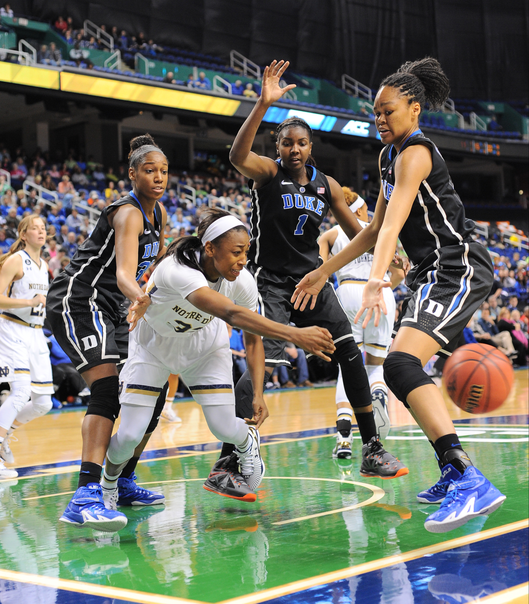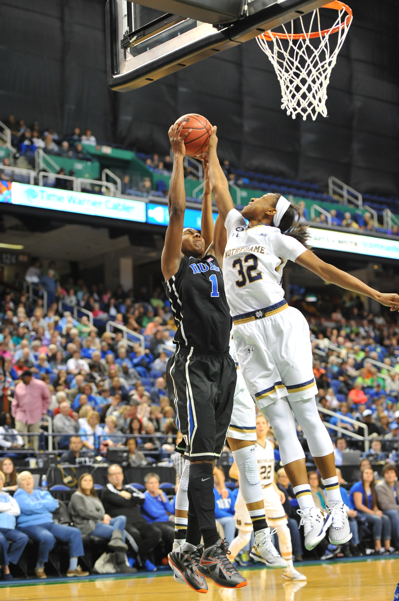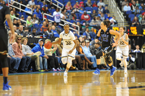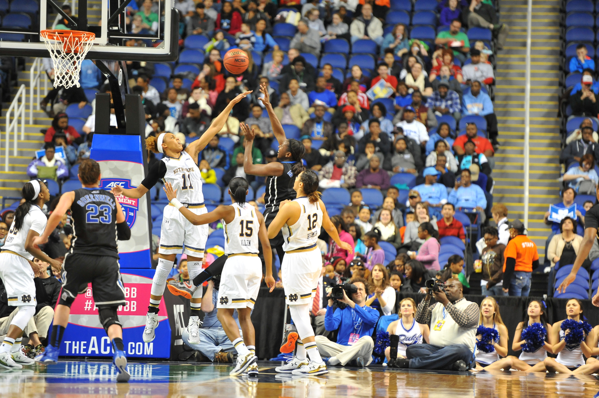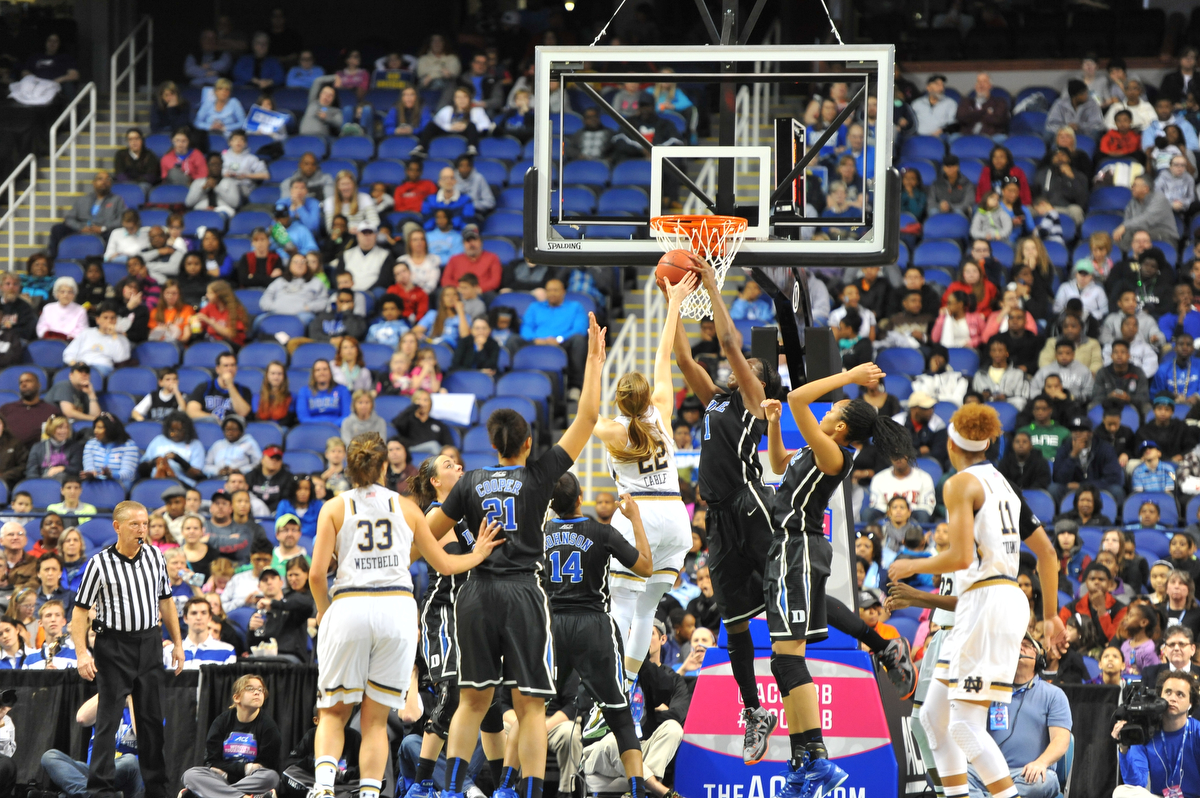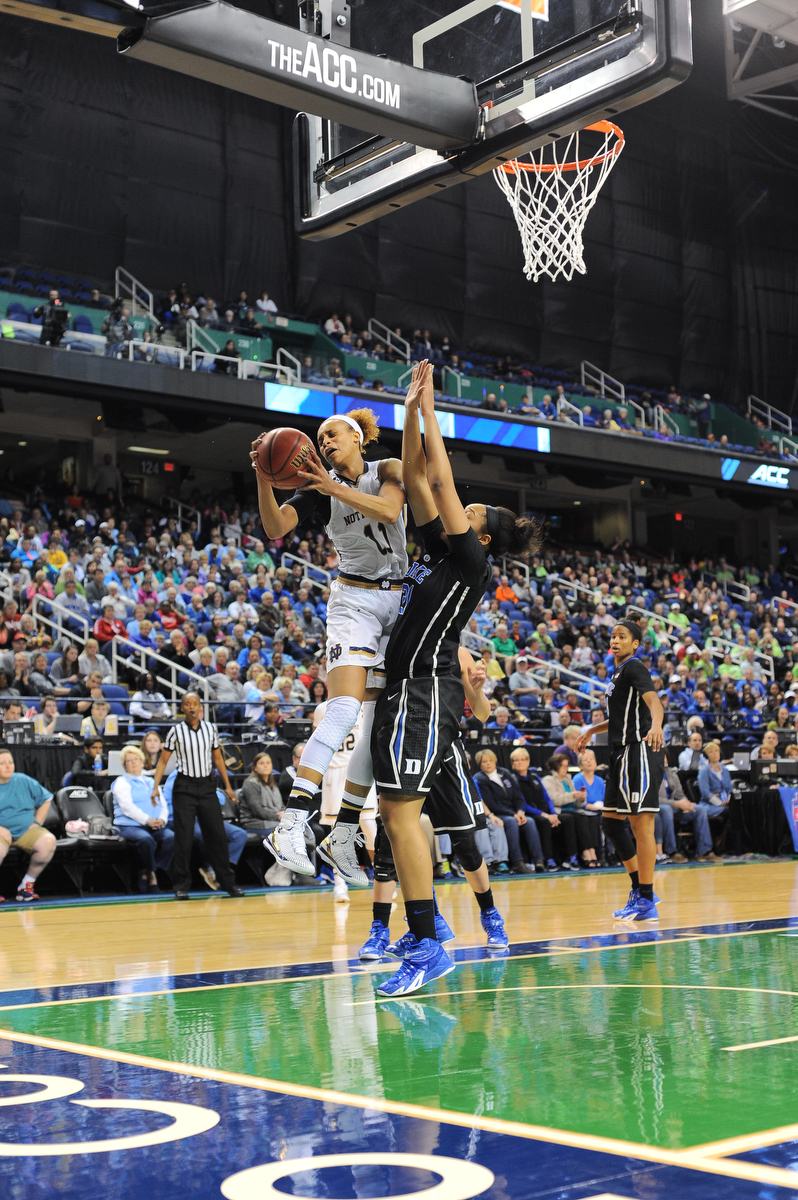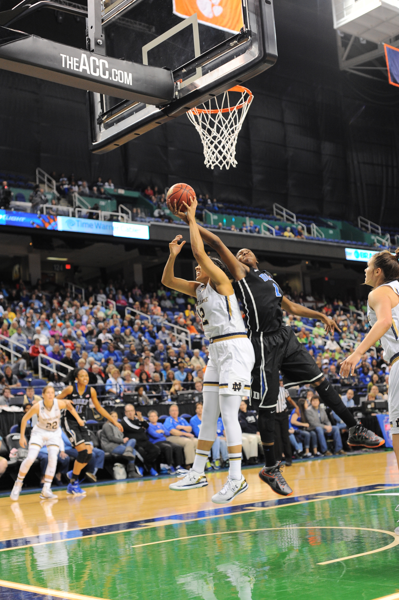 GREENSBORO, N.C. — The top-seeded and defending ACC-champion Notre Dame Fighting Irish held off the fourth-seeded Duke Blue Devils to earn a 55-49 semifinal victory in the 2015 ACC Women’s Basketball Tournament played at Greensboro Coliseum on Saturday.