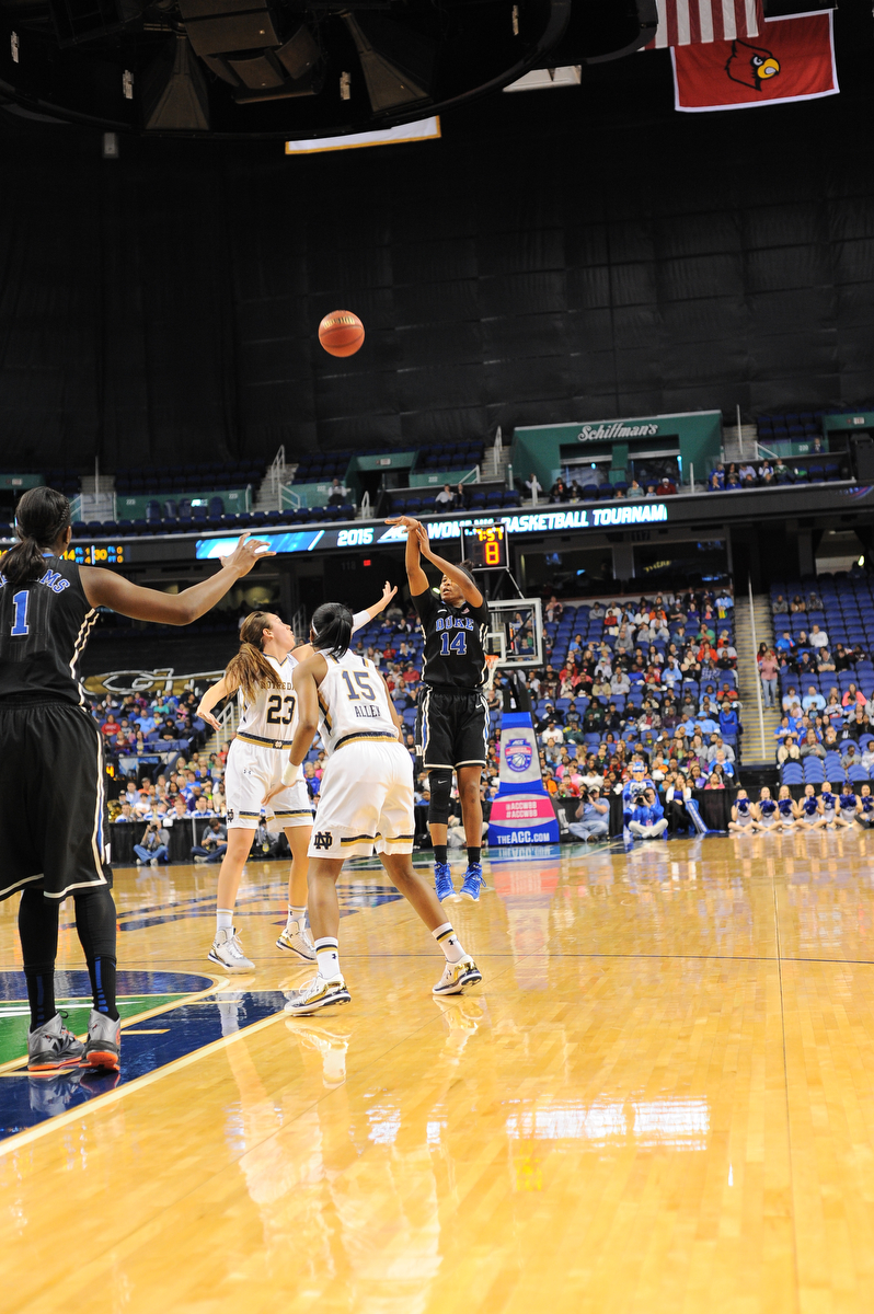 Elizabeth Williams, the ACC Defensive Player of the Year, registered 15 points and 8 rebounds. With one block, she has a total of 33, second all-time in ACC Tournament history.