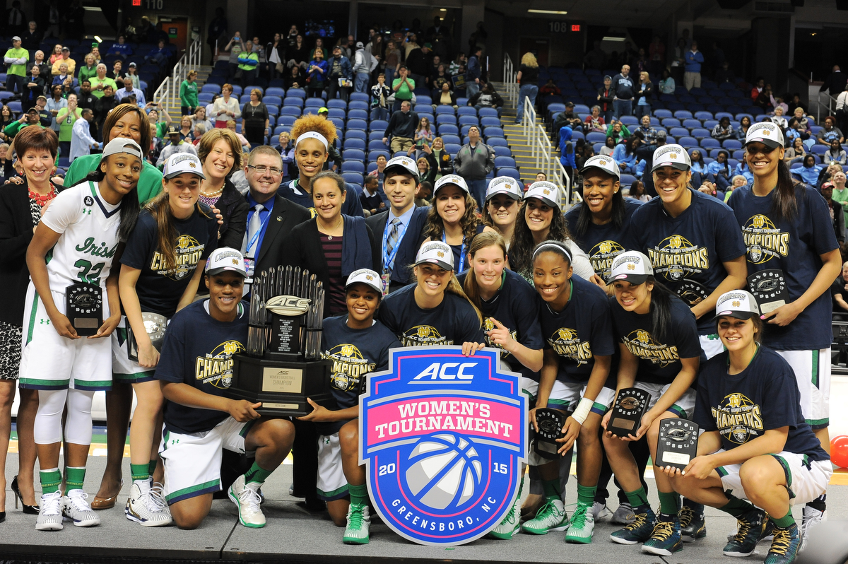 GREENSBORO, N.C. – Second-ranked Notre Dame claimed its second consecutive title, winning the 2015 ACC Women’s Basketball Tournament by a 71-58 margin over the seventh-ranked Florida State Seminoles at Greensboro Coliseum on Sunday.