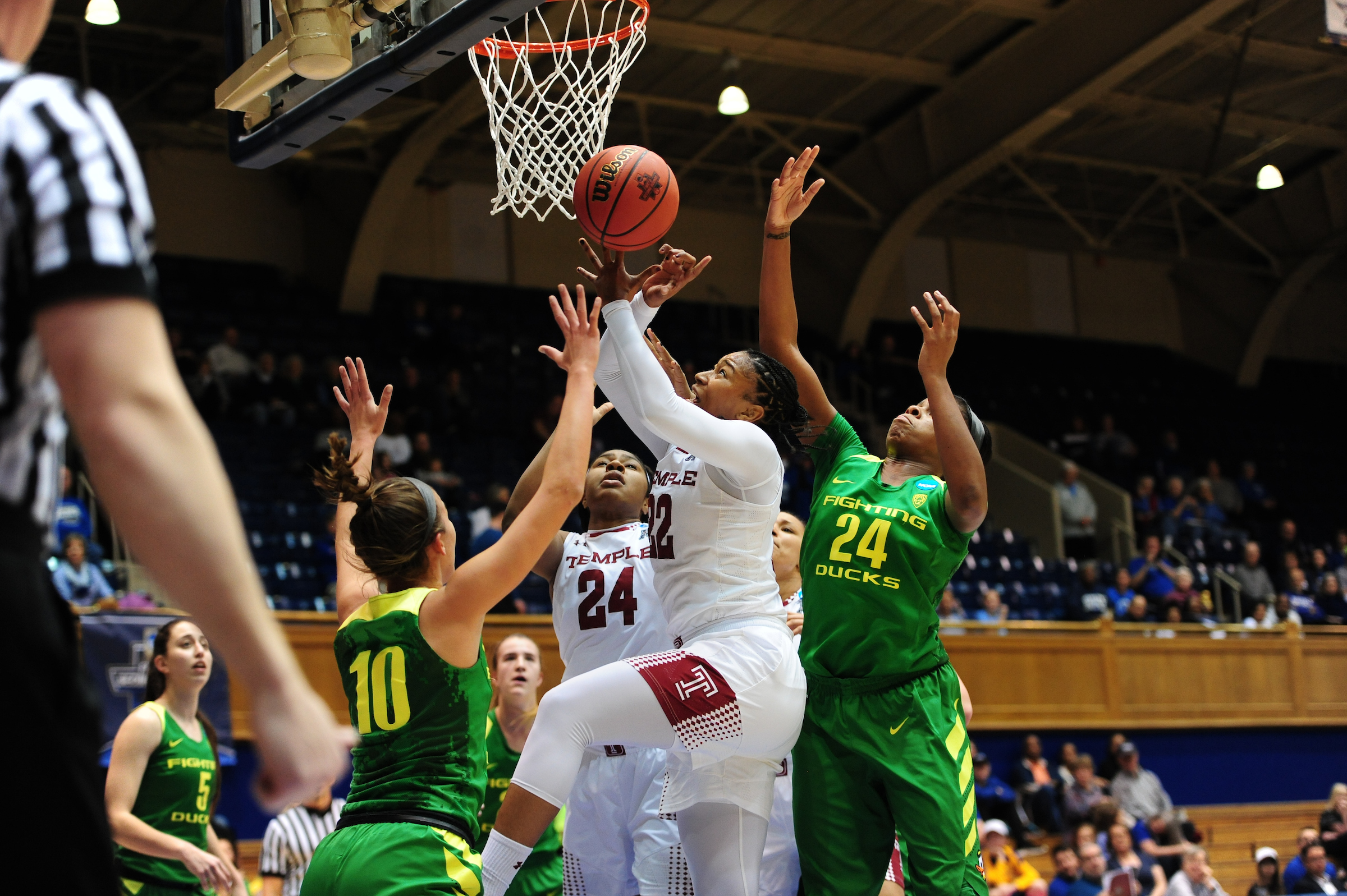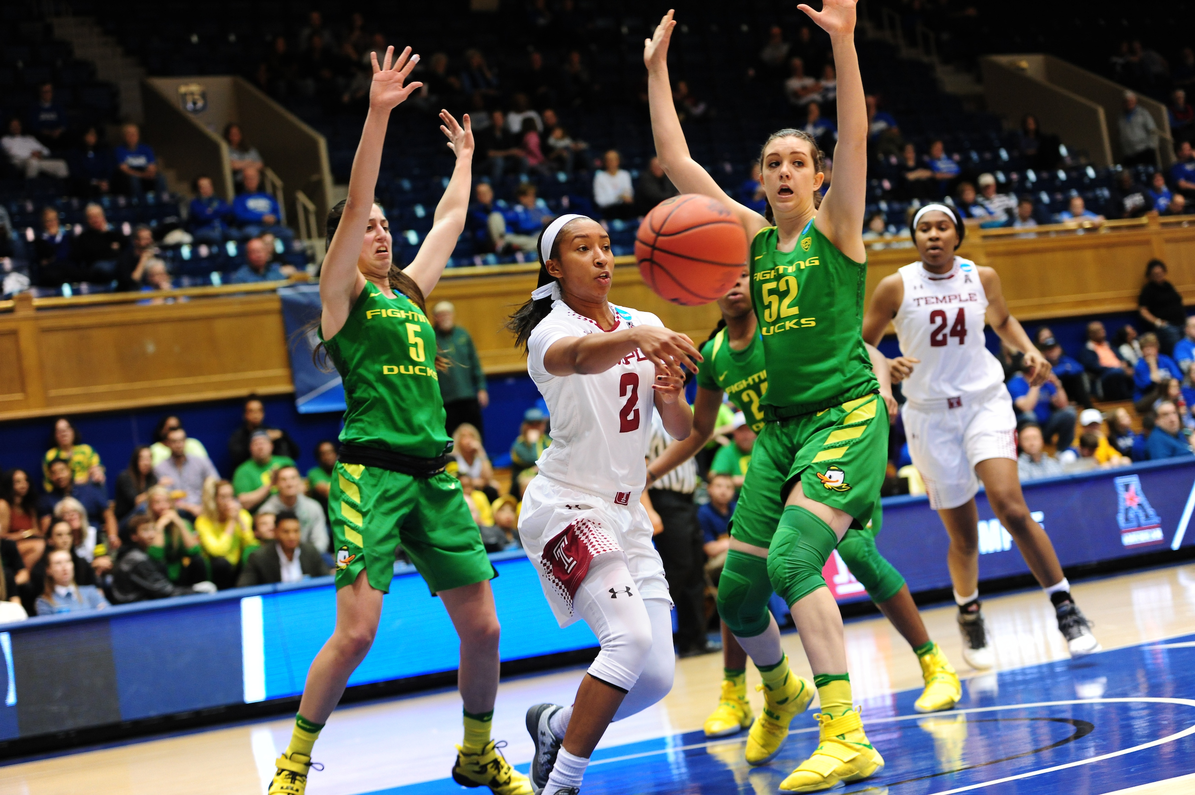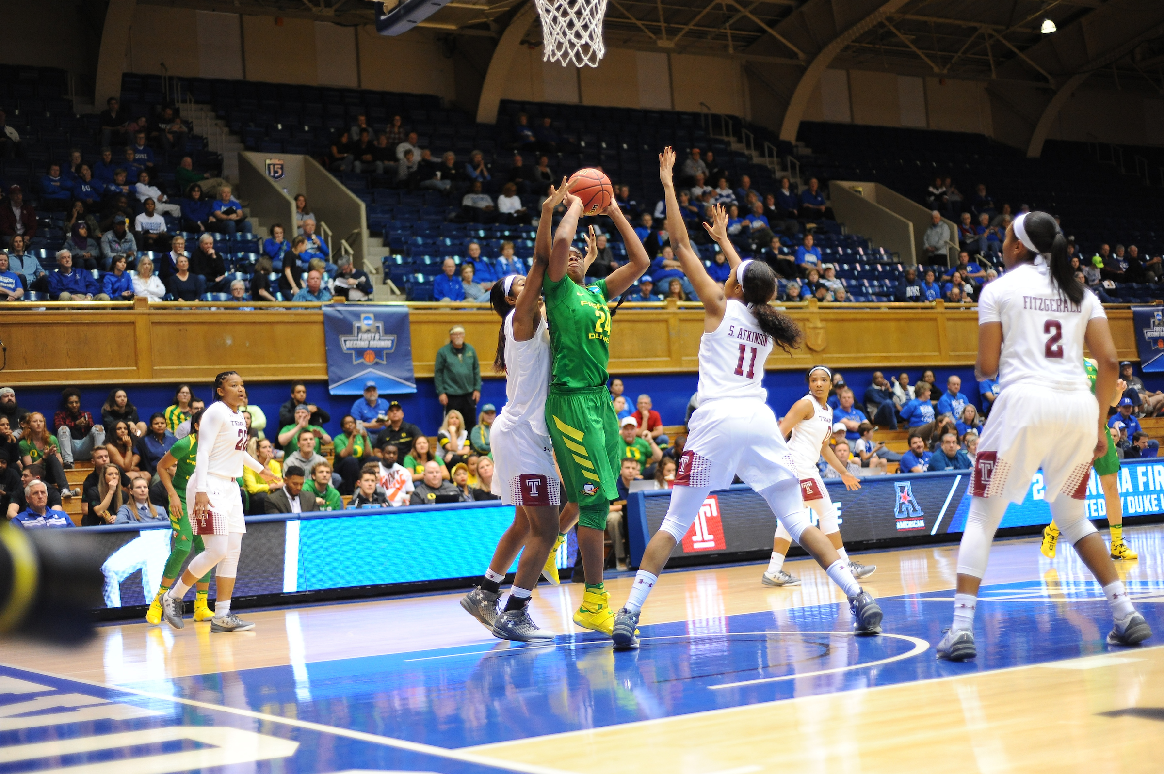 DURHAM, N.C. – Ruthy Hebard did it all during the dying seconds of first-round play in the 2017 NCAA Women’s Basketball Tournament to give the Oregon Ducks a 71-70 win over the Temple Owls at Cameron Indoor Stadium on Saturday.