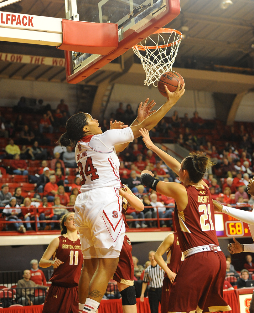 Gatling’s career-high in scoring and her 9-for-10 performance from the free throw line which matched Brown’s work from the charity stripe was critical in keeping the Eagles at a distance throughout the game as NC State (17-3, 4-2) scored a season-high 29 free throws on 36 attempts made.