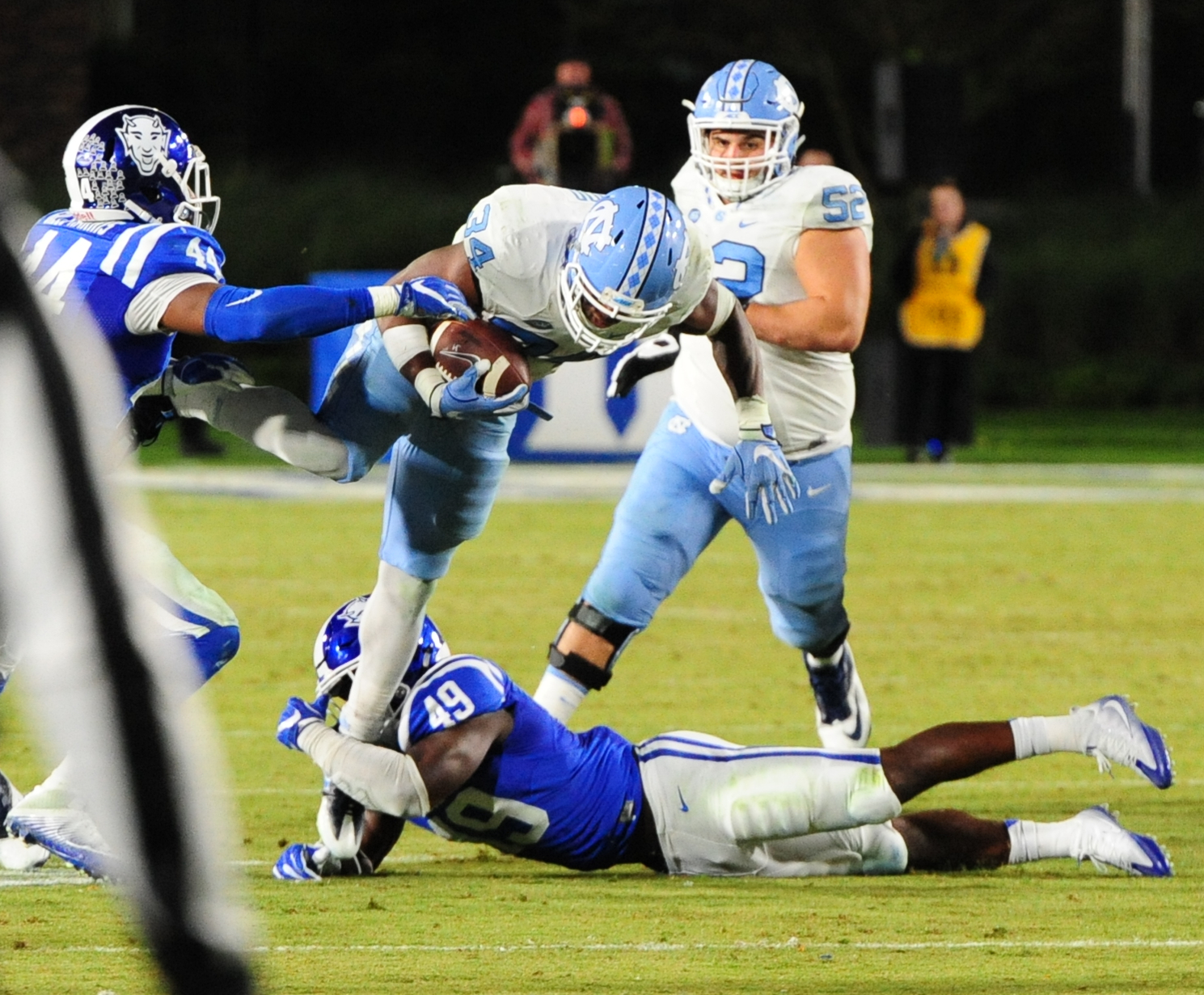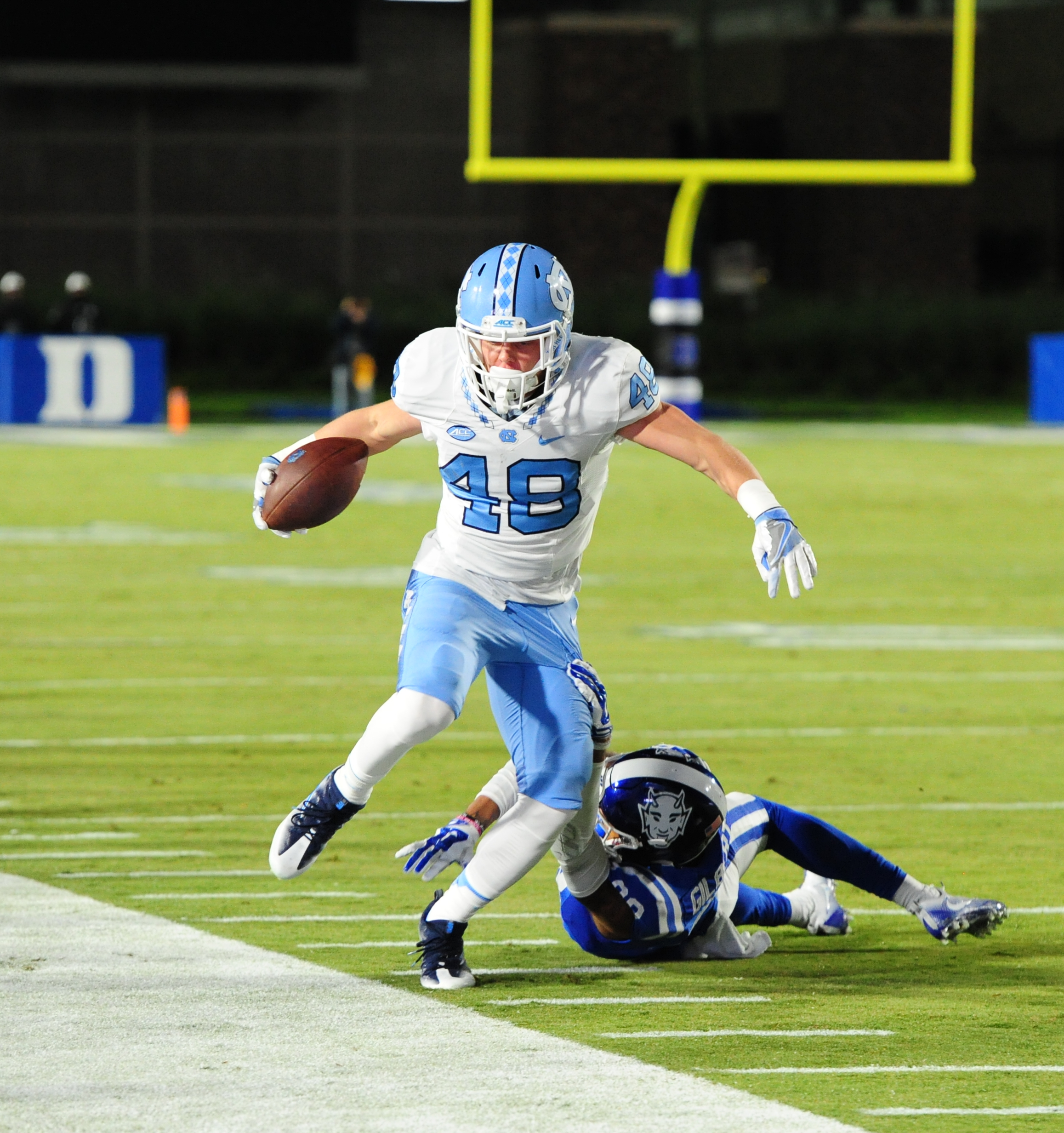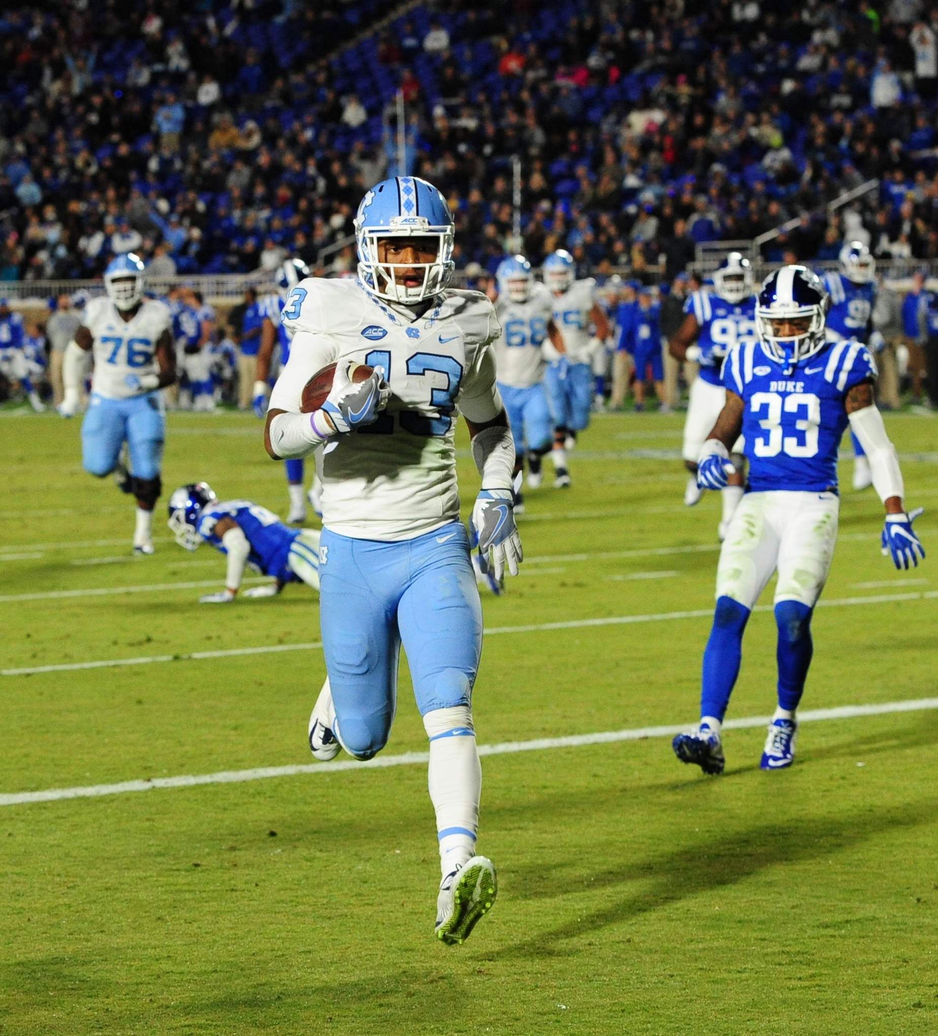 UNC led 14-0 after the first quarter of play before Duke evened it up with touchdowns from Jones and Wilson.