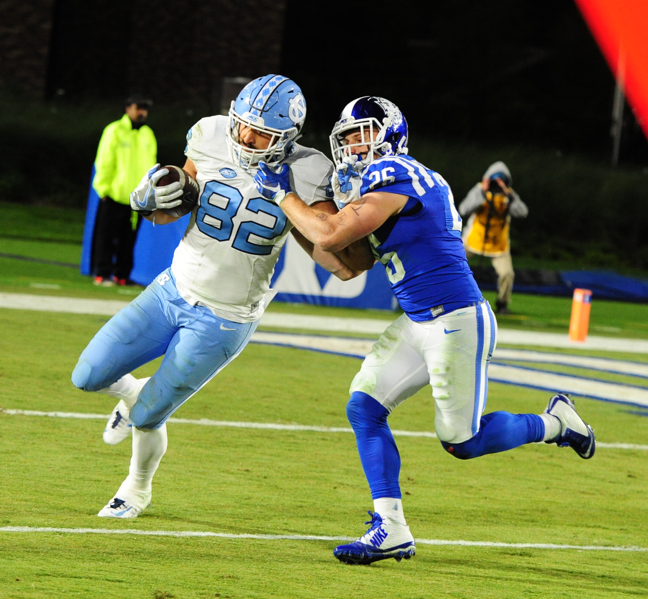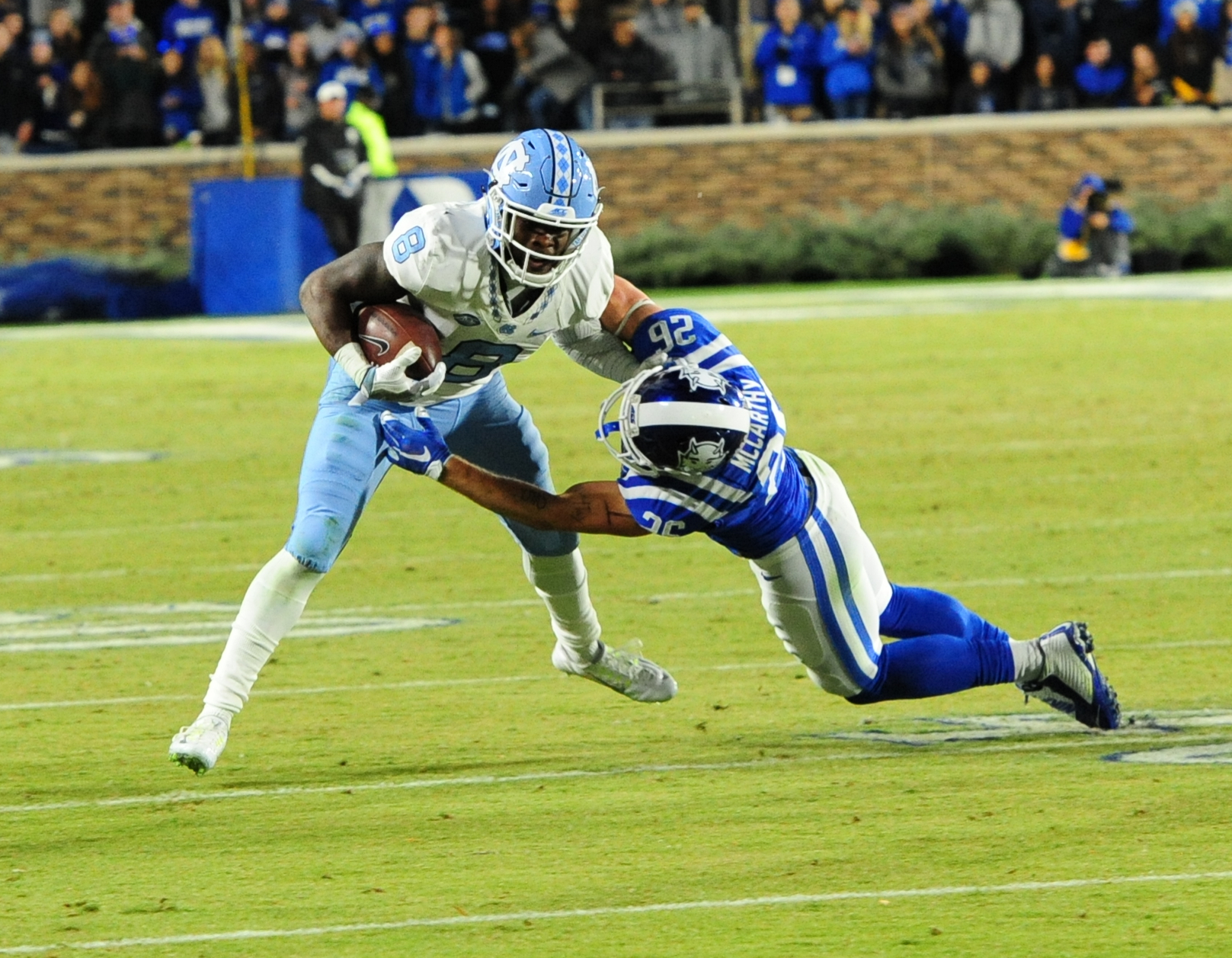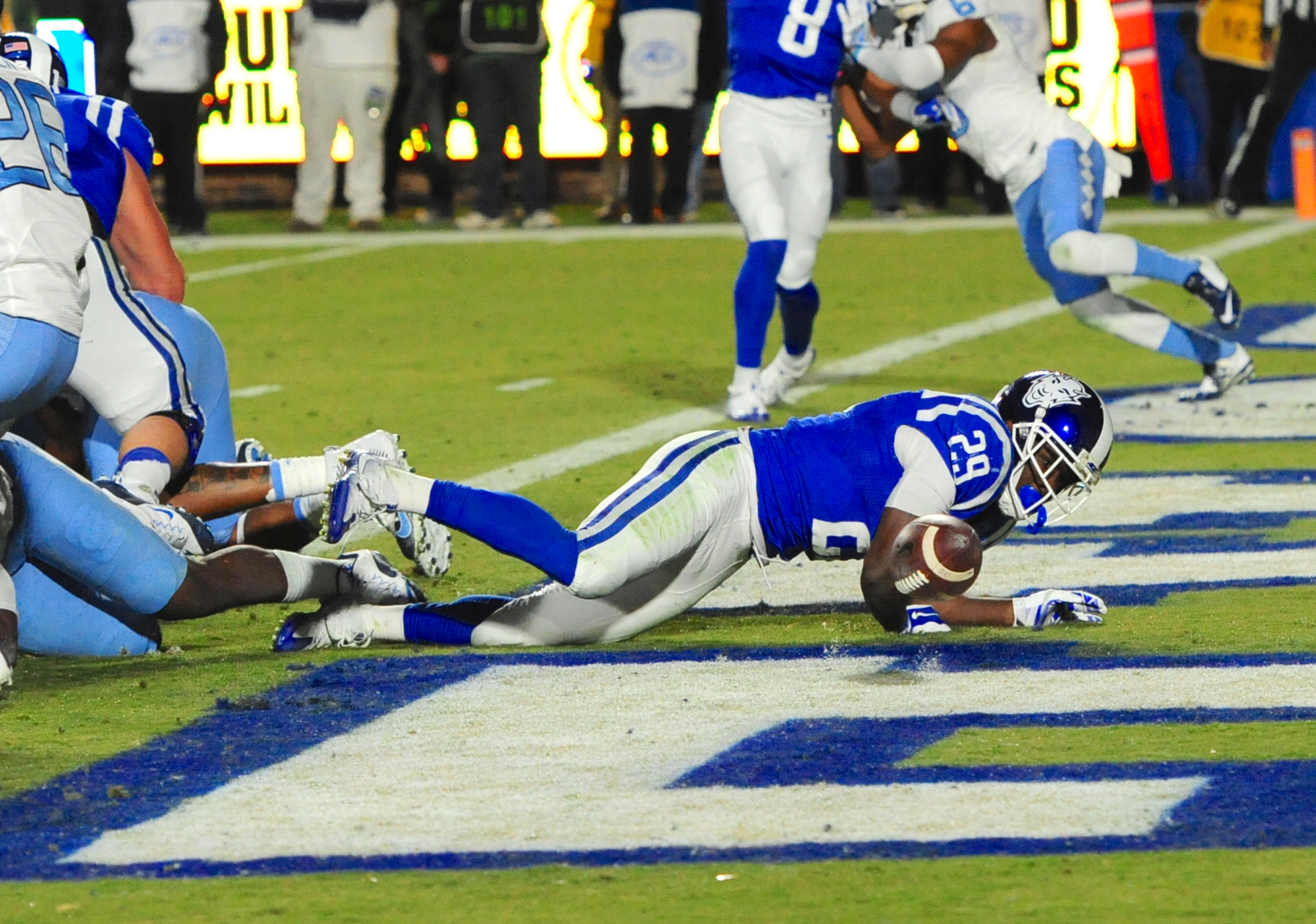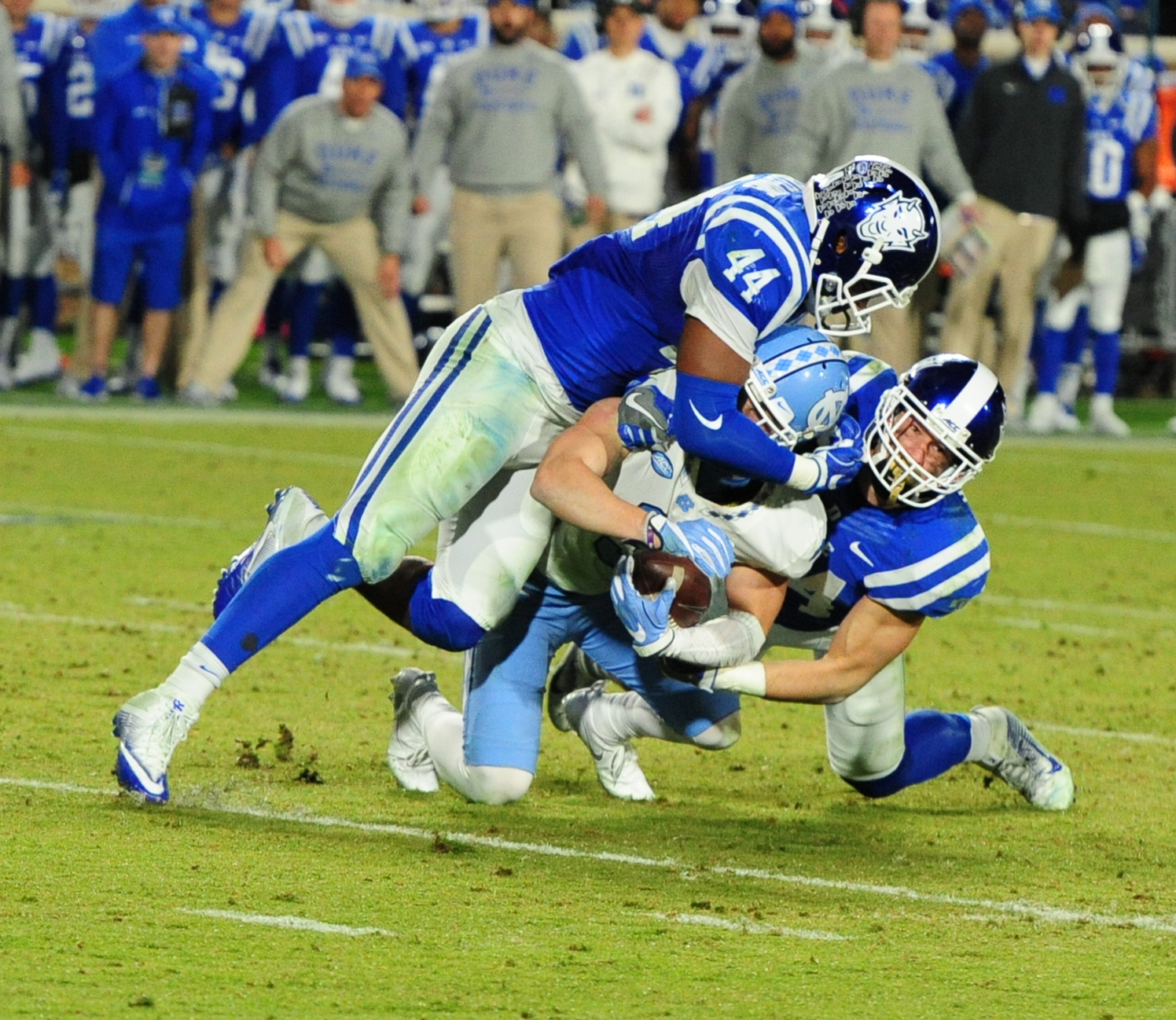 UNC led 14-0 after the first quarter of play before Duke evened it up with touchdowns from Jones and Wilson.