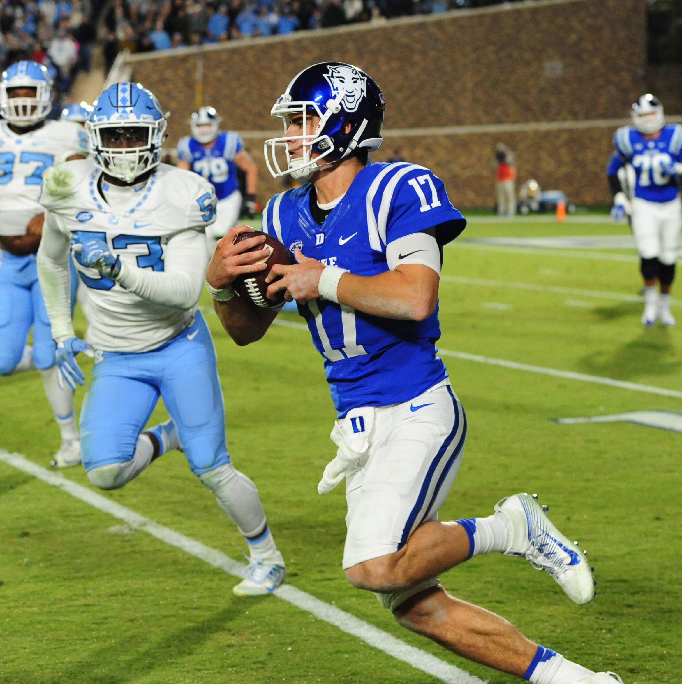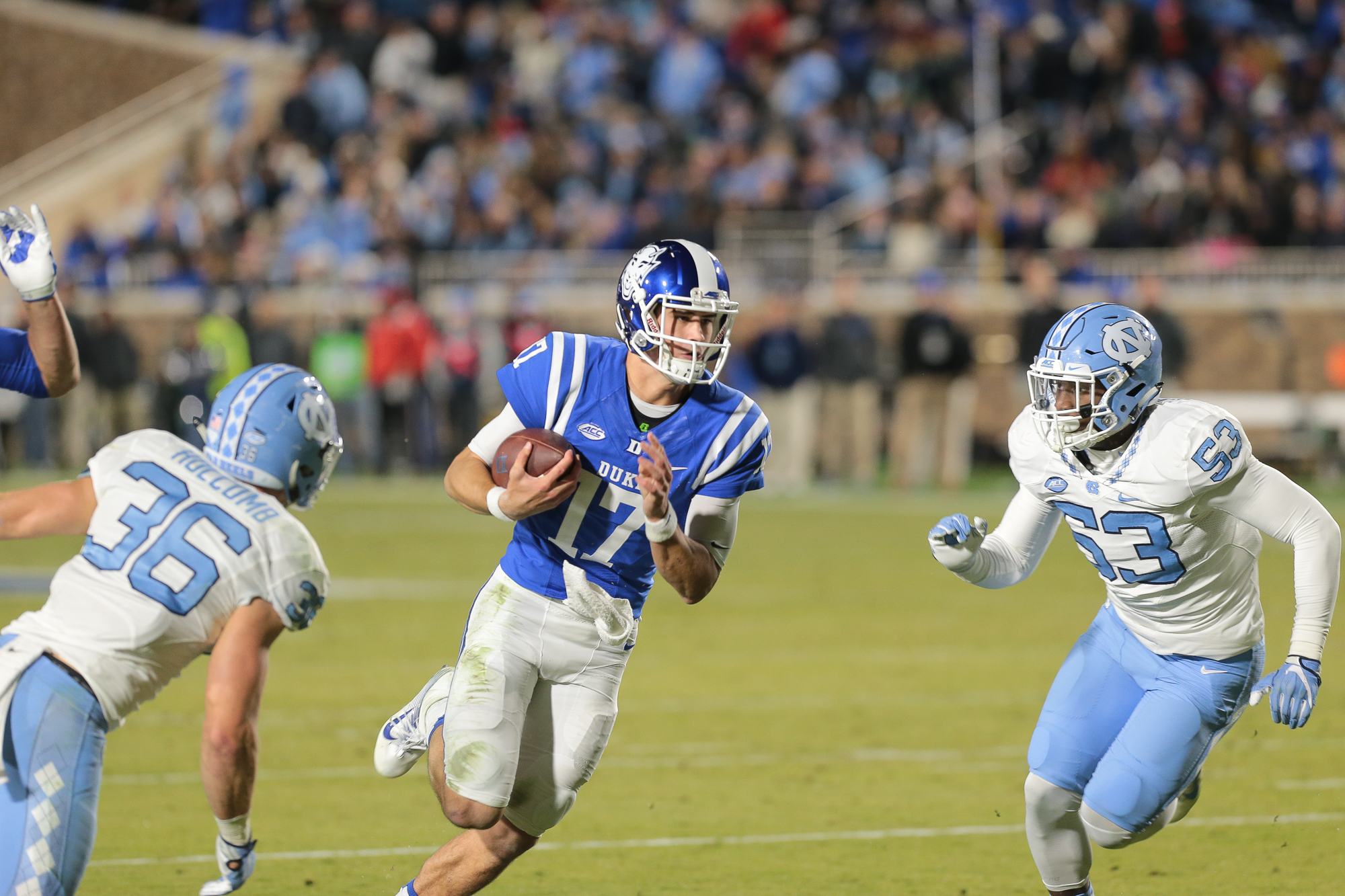 Being Duke’s Senior Day game, the contest was the quintessential rivalry game as 39,212 fans from both sides screamed from the opening kickoff until the final whistle as the lead changed back and forth throughout.