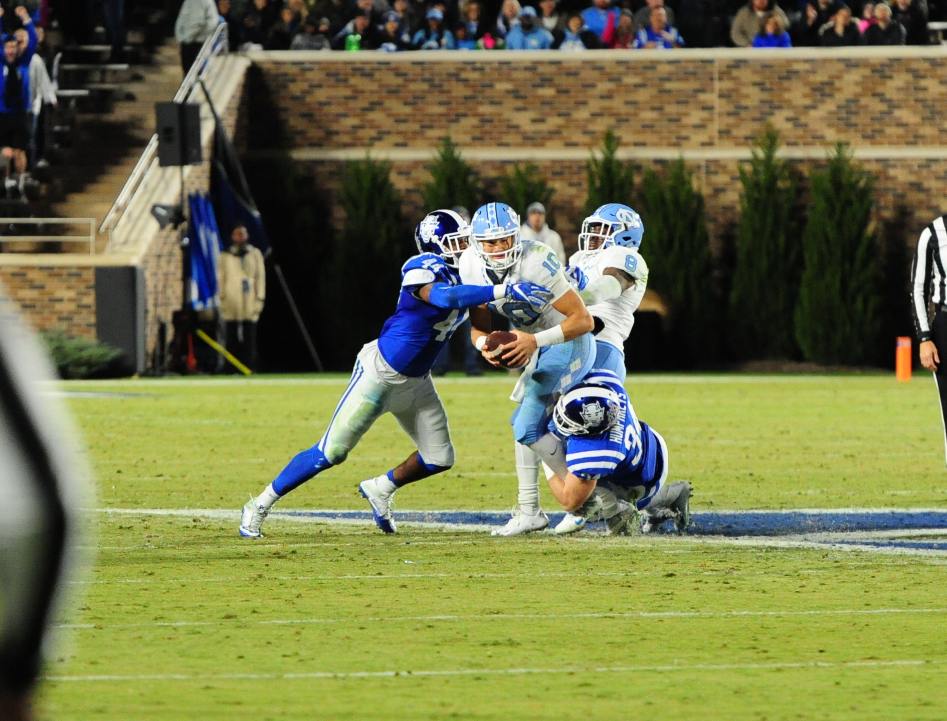 Trubisky’s second interception of the game pulled in by Duke’s Alonzo Saxton II ended North Carolina’s final push with 49 seconds remaining.