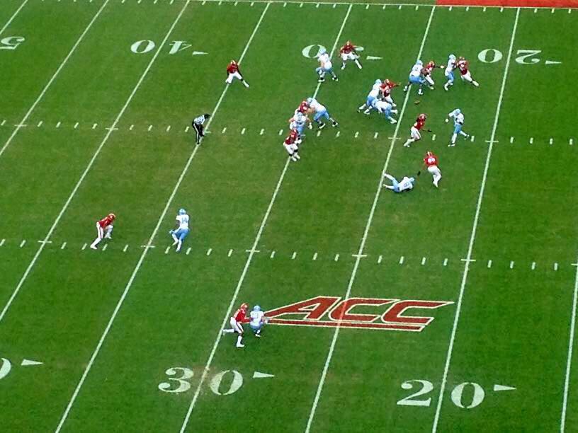 A fumble by Williams off a scramble past the line of scrimmage in the UNC half of the field was recovered by N.C. State’s Airius Moore, and gave the Wolfpack faithful hope that their team would capitalize on it.