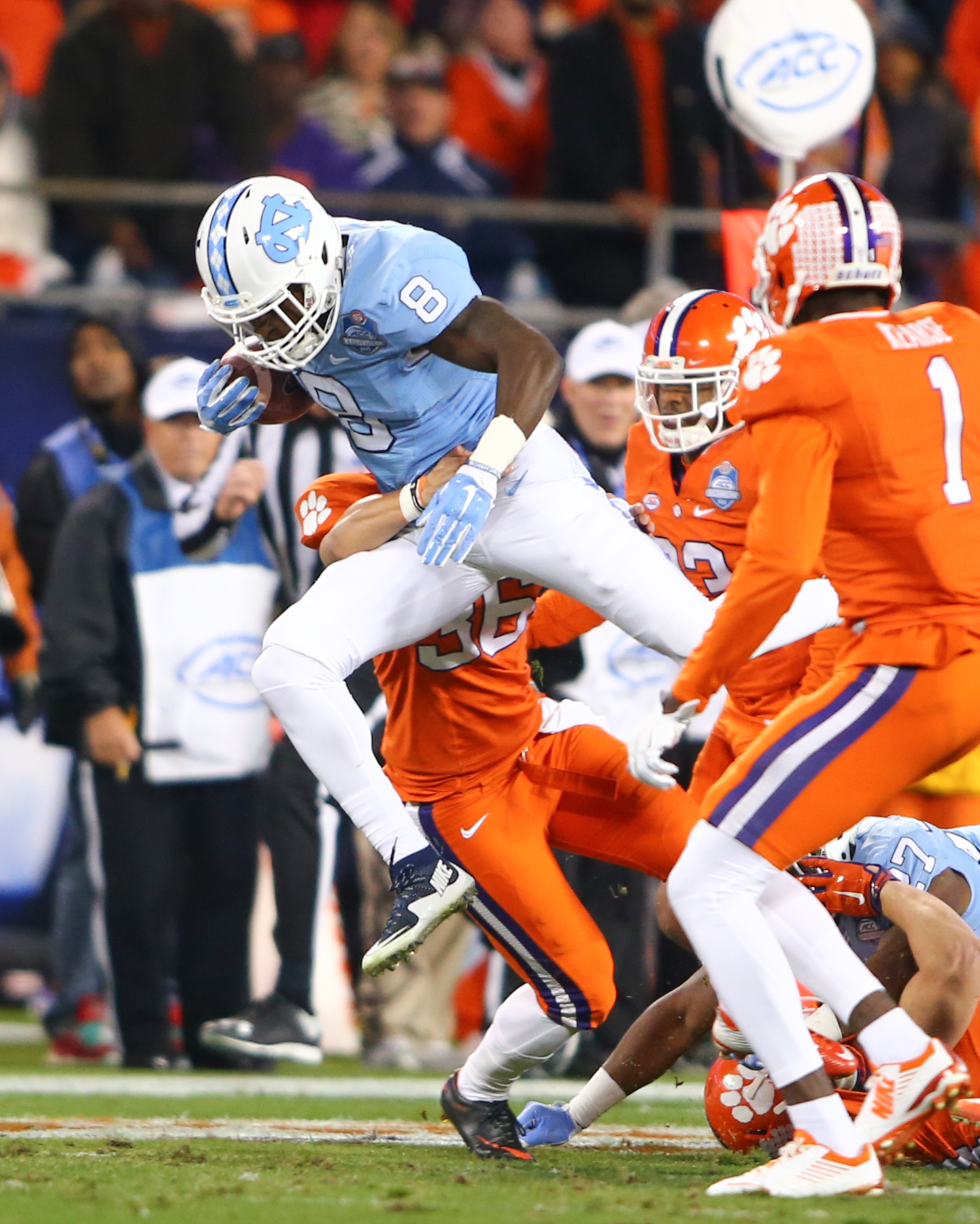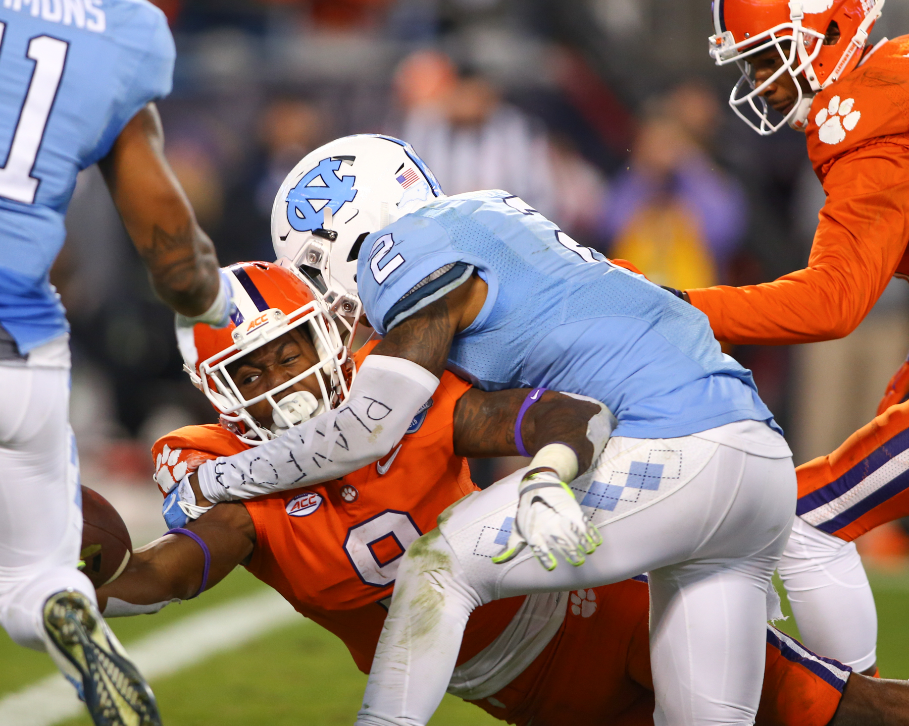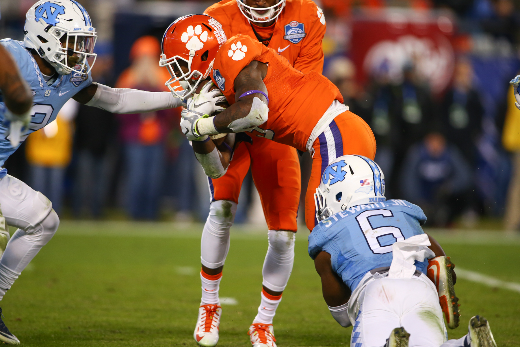 CHARLOTTE, N.C. – Quarterback Deshaun Watson, the Atlantic Coast Conference (ACC) Player of the Year, led the top-ranked Clemson Tigers to a 45-37 league championship win over the 10th-ranked North Carolina Tar Heels at Bank of America Stadium on Saturday.