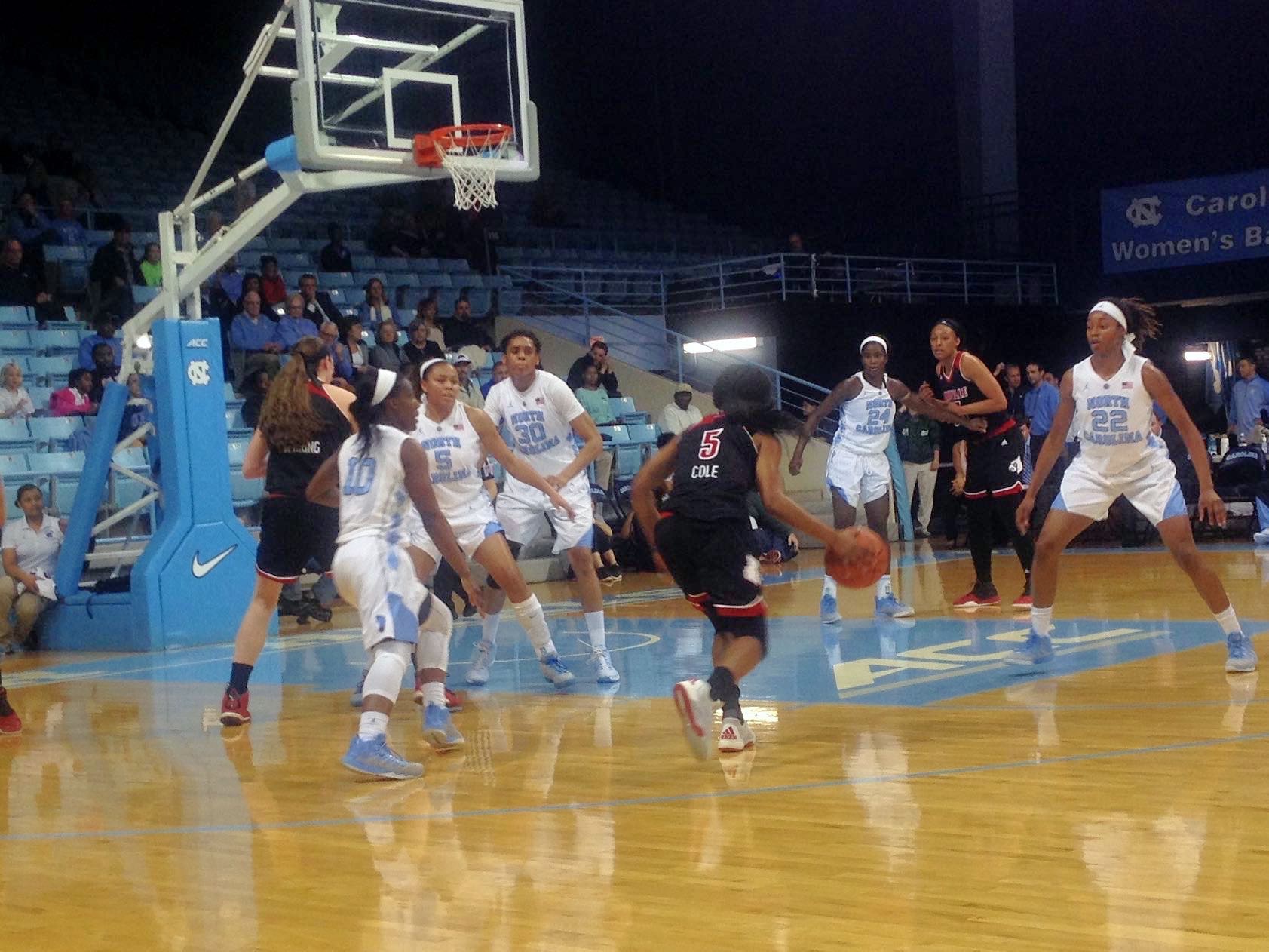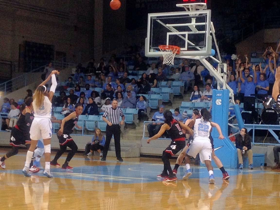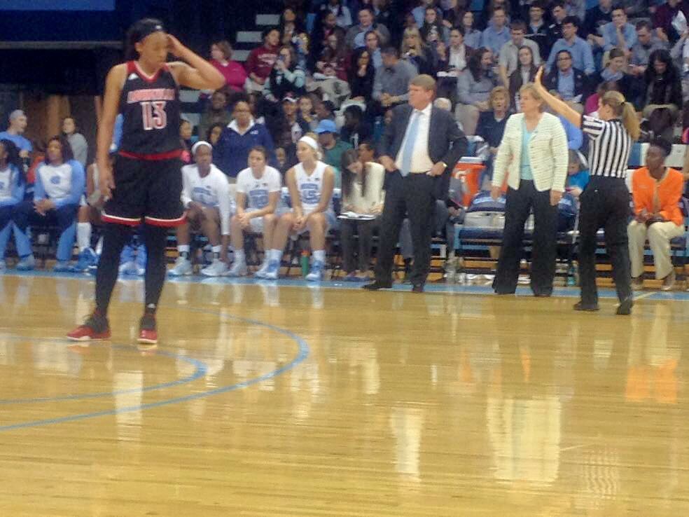 Erika Johnson (7 points, 4 rebounds) hit the Tar Heels’ first points of the quarter from the free throw line with 2:57 to play.