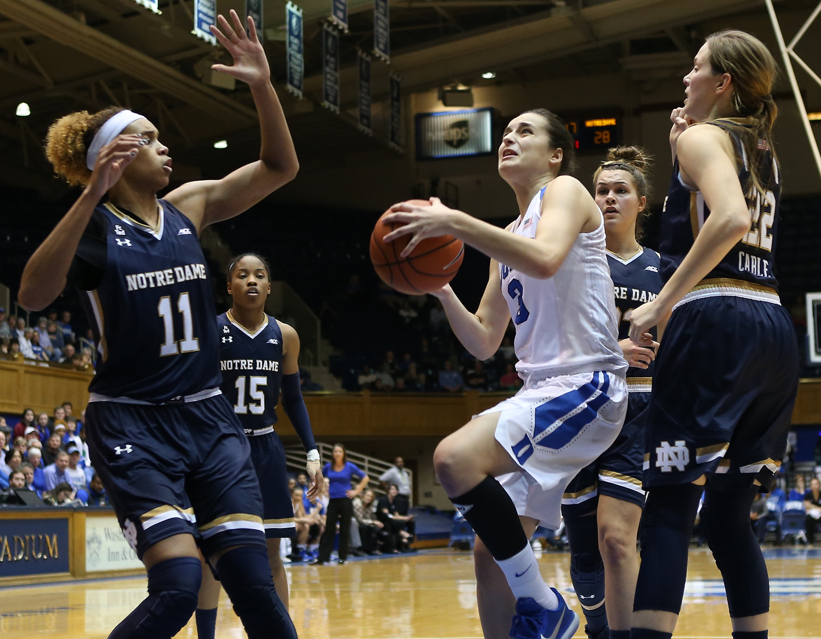 Defensively, the Blue Devils continued to outrebound Notre Dame which continued to struggle from the field, missing seven straight shot attempts during that time.