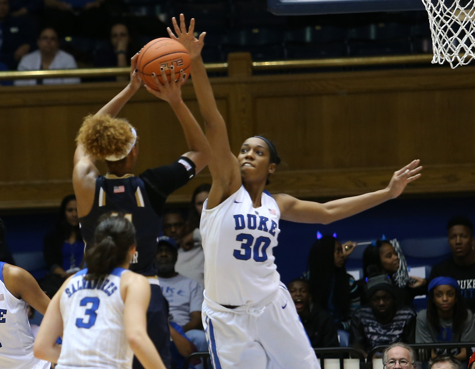 Duke played one of its better games of the season against a ranked opponent with three players posting double-digit finishes led by Rebecca Greenwell (16 points, 9 rebounds), Azura Stevens (14 points, 7 rebounds), and Kyra Lambert (10 points, 4 rebounds).