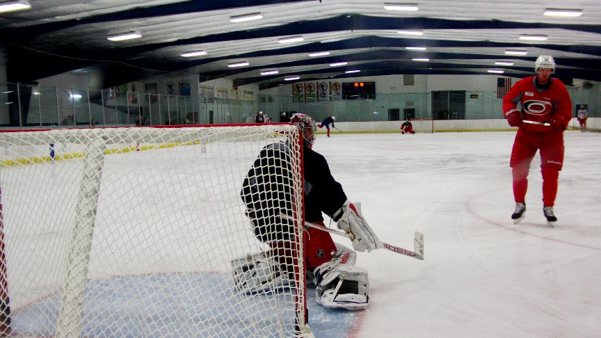 RALEIGH, N.C. – Carolina Hurricanes goaltender Cam Ward looked refreshed after facing a number of shots during an informal skating session at Raleigh Center Ice on Friday.