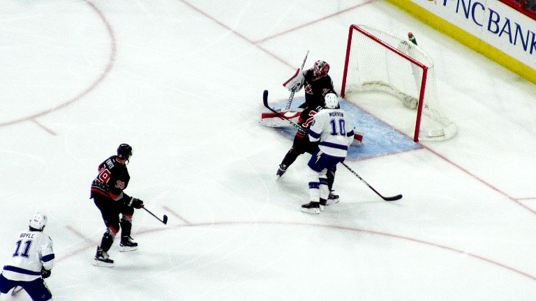 Carolina’s NHL All-Star Game representative scored his ninth of the season on a clean wrist shot from the point that made it through traffic in front of Bishop and extended the lead to 3-1.