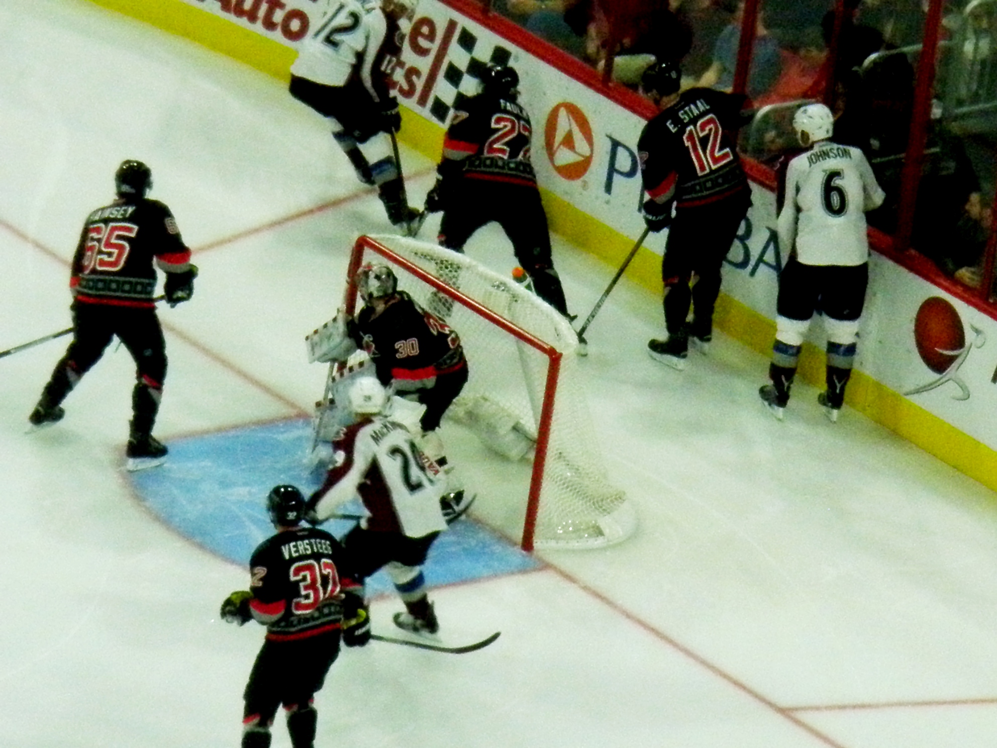 As time in the game continued to run down for Colorado, Ward held strong in his crease as a backhand attempt from Jarome Iginla was denied with the Hurricanes still leading by two.