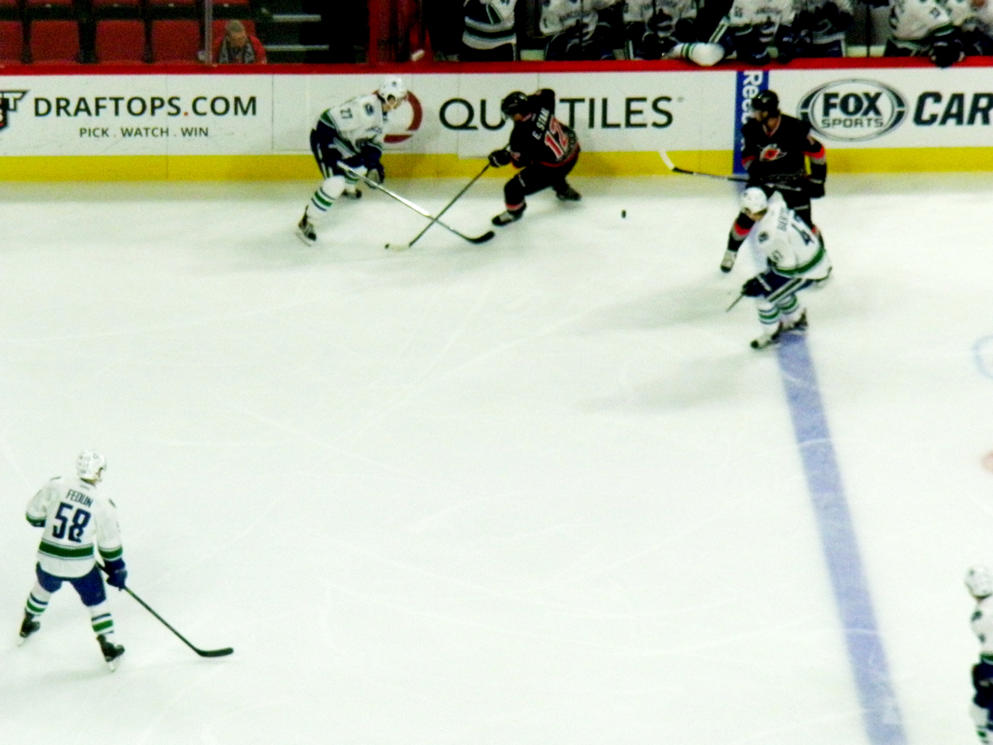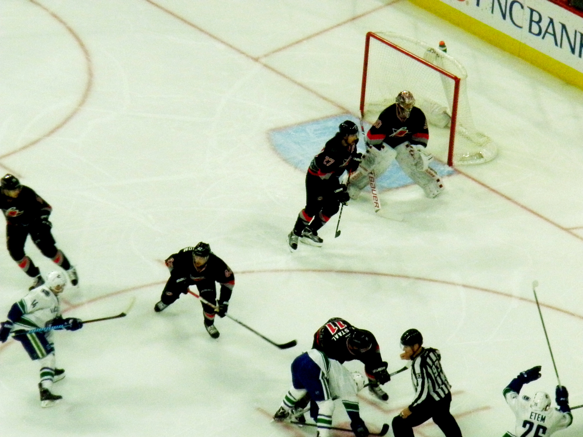 Carolina continued to dominate in maintaining puck possession in the Vancouver zone, and outshot the Canucks considerably throughout the first half of the period.
