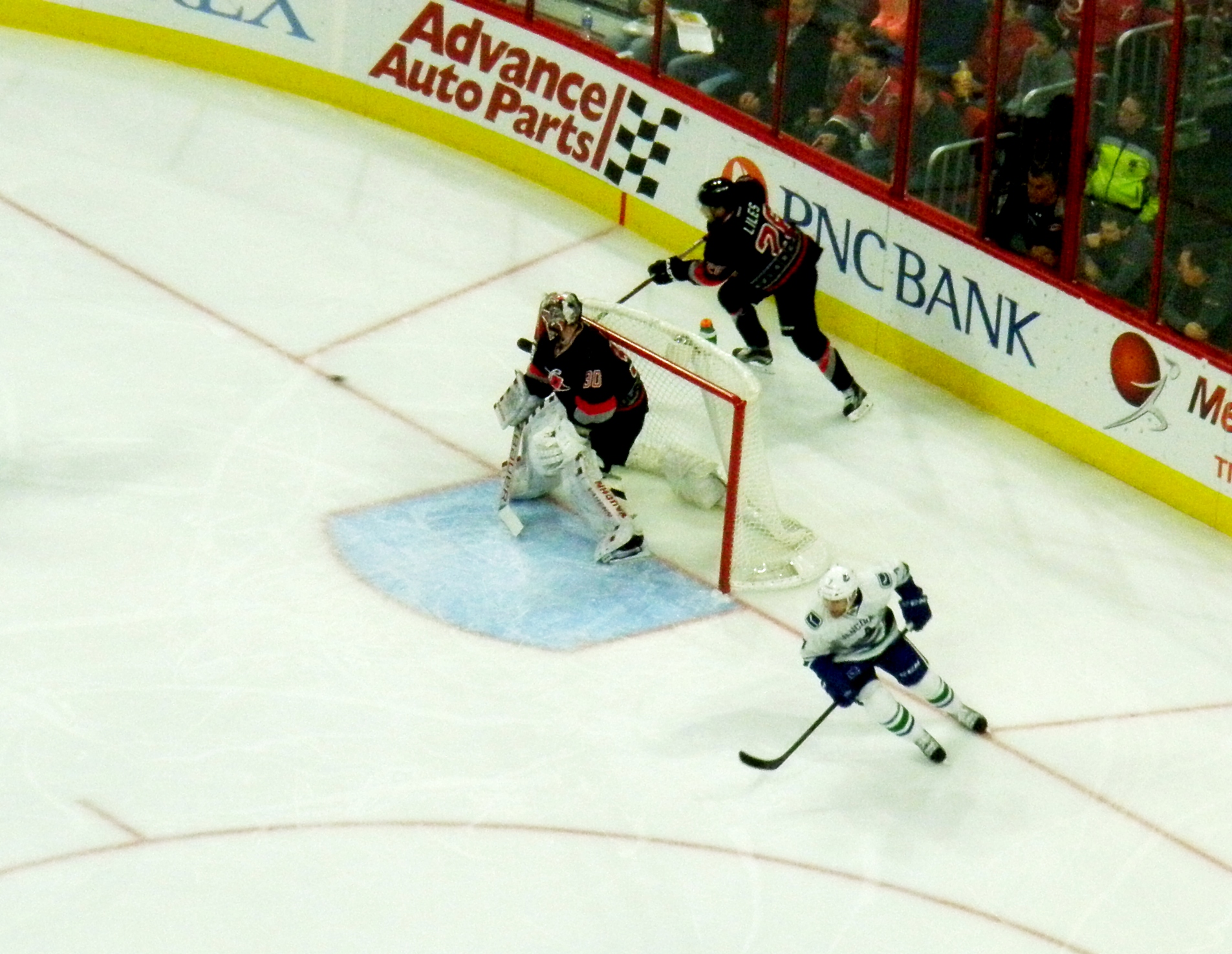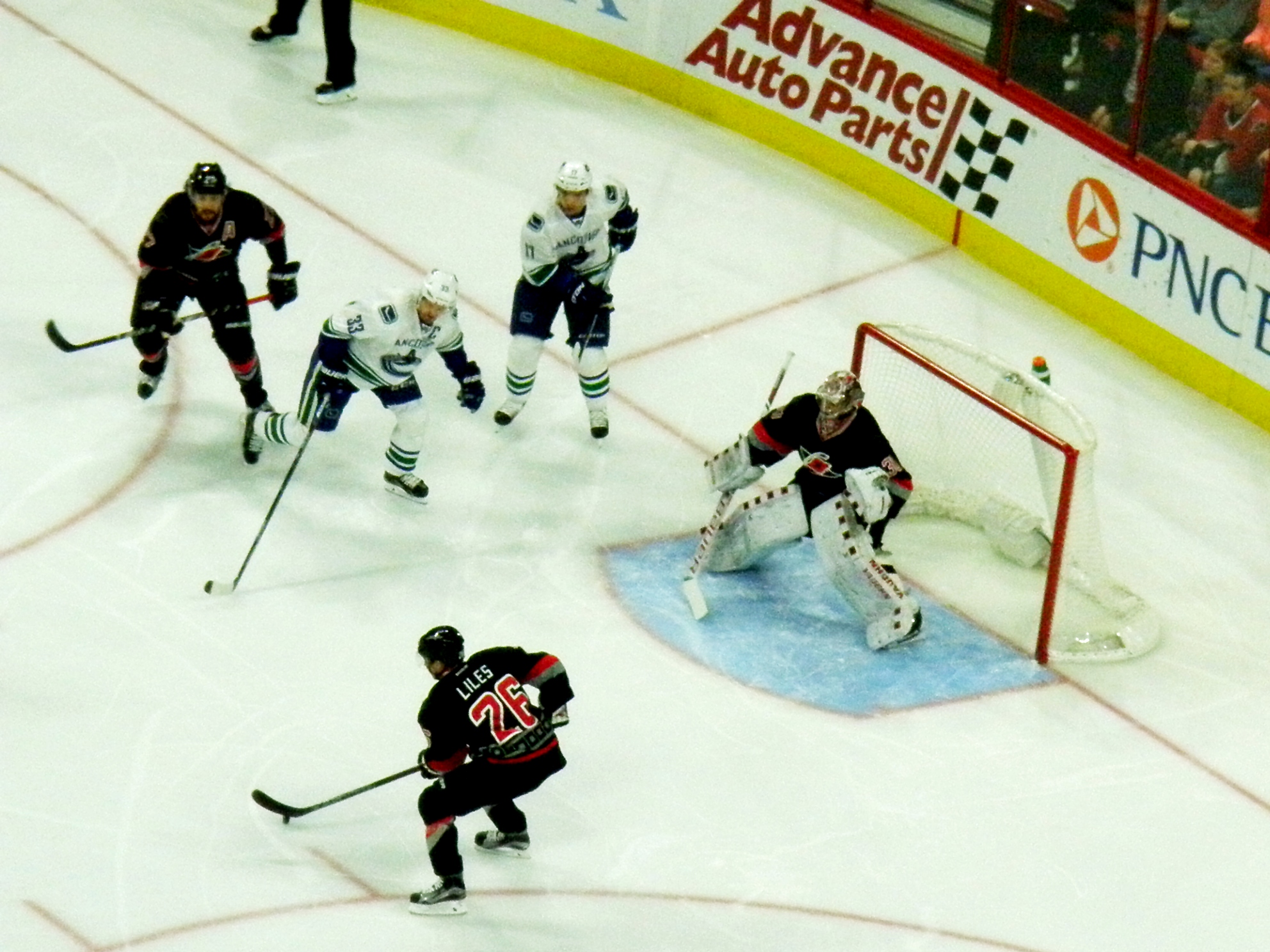 The Hurricanes didn’t relent and finally tied it when Liles pinched in deep and fired the puck towards the Vancouver crease and ricocheted off Vancouver defenseman Matt Bartkowski’s skate before going into the net.