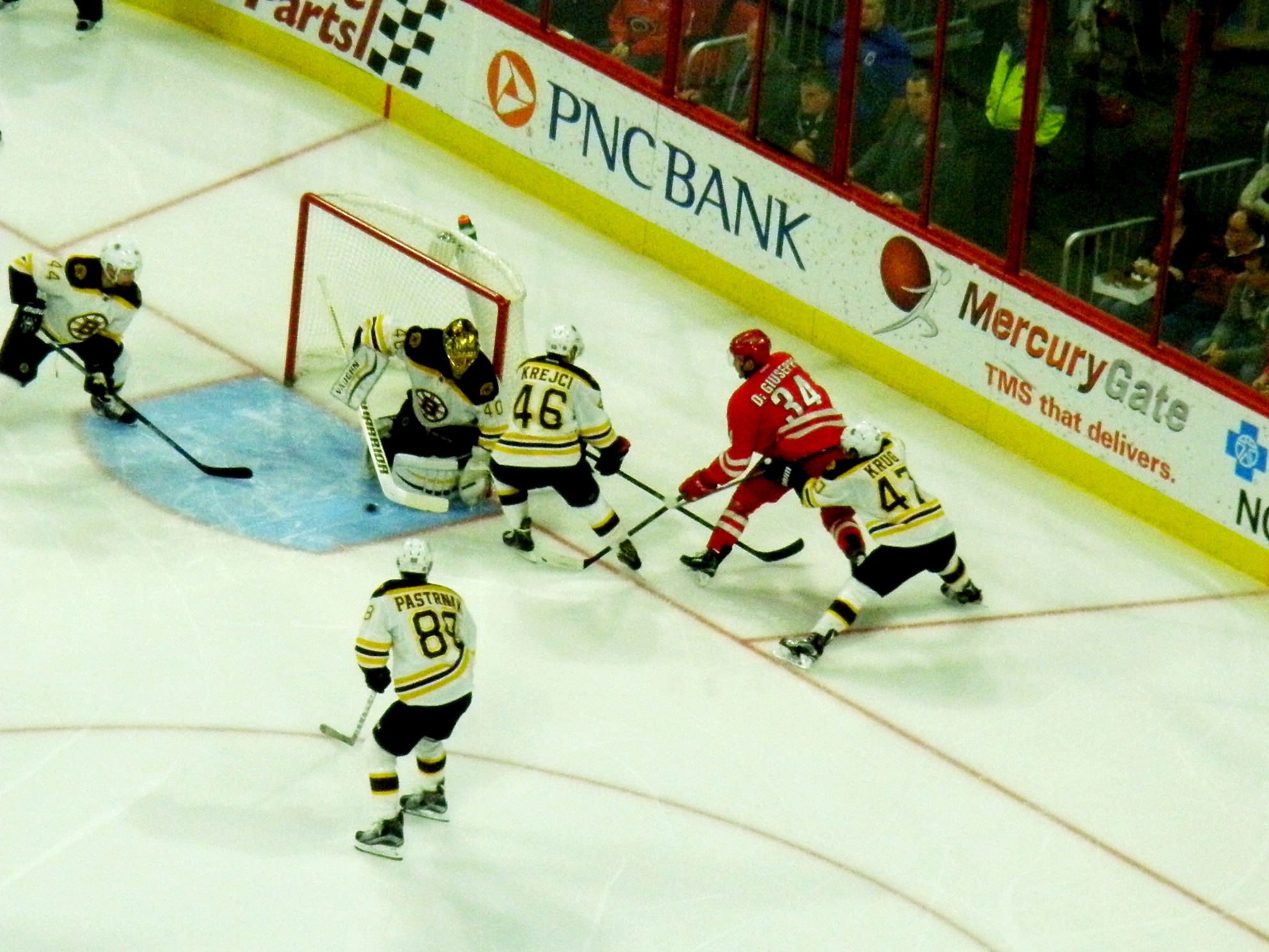 Playing to one of the bigger crowds of the season at PNC Arena on Friday, the Carolina Hurricanes and Boston Bruins offered up a gritty display of end-to-end hockey that ended with the Hurricanes losing 4-1 as a result of an impressive 39-save performance from Bruins netminder Tuukka Rask.