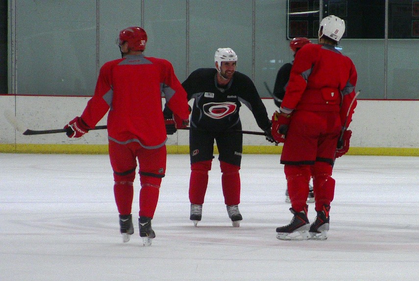 Eric Staal, Jiri Tlusty, Cam Ward, Jay Harrison, Tim Gleason, Pat Dwyer, Kevin Westgarth, Zach Boychuk, Ryan Murphy, Zac Dalpe, Nicolas Blanchard, as well as a few other pros including former ‘Canes forward Jon Matsumoto (Florida), goalkeeper Jeff Zatkoff (Pittsburgh), and even the retired Bates Battaglia were all part of the bunch who made the ice tech work harder to smooth the ice afterwards.