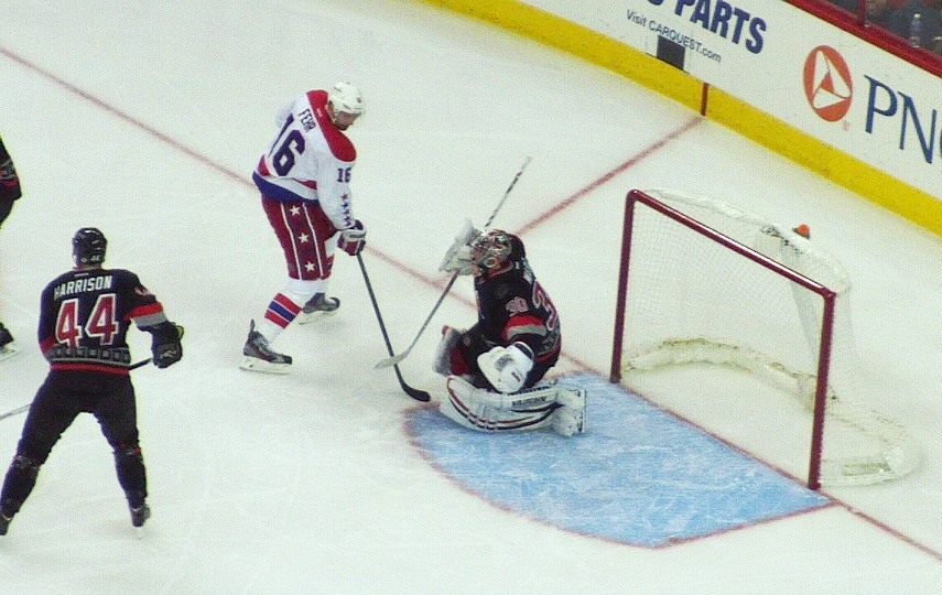 As Faulk’s pass slid towards him, Semin tipped the puck past three Capitals players to the streaking Staal who picked the puck at the blue line in full stride.