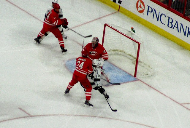 The goaltender got the support of his teammates in front of him and the Hurricanes fought off all final advances from the Kings to tie the game, and earned another win at home in front of 10,519 in attendance.
