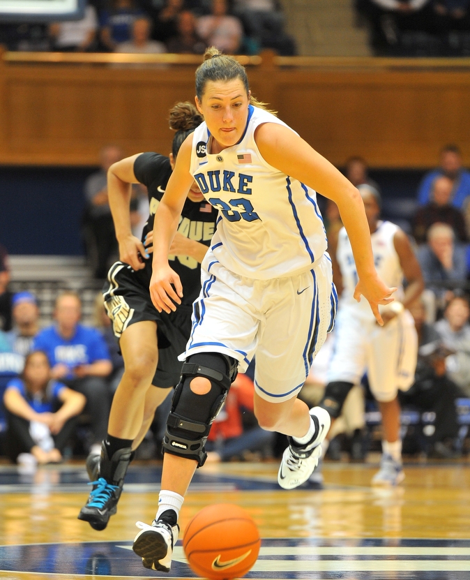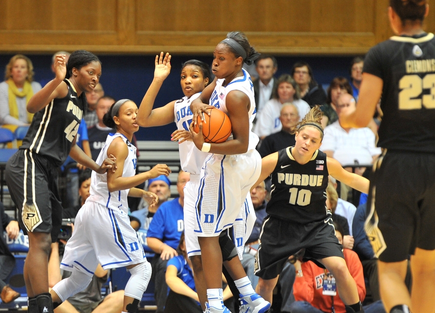 Jones’ season-high 22 points led all scorers as Duke’s starters all finished with double-digit scoring totals – Chelsea Gray (16 points, 9 assists, 5 rebounds), Peters (14 points, 9 rebounds), Elizabeth Williams (14 points, 6 rebounds), Tricia Liston (13 points, 6 rebounds), and Richa Jackson (11 points, 2 rebounds) who came off the bench, all poured it on to overtake a tenacious Purdue squad.