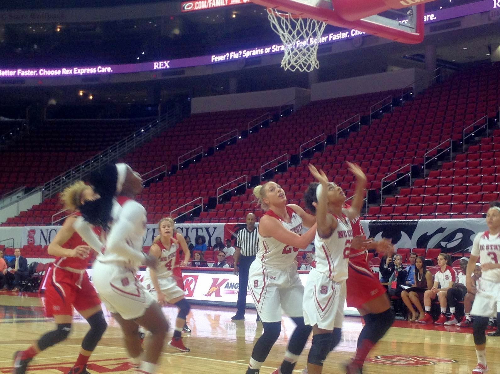 Though leading by 20 points (64-44) with 8:06 to play, N.C. State’s scoring went dormant as a number of missed shots highlighted the final four-and-a-half minutes of play.