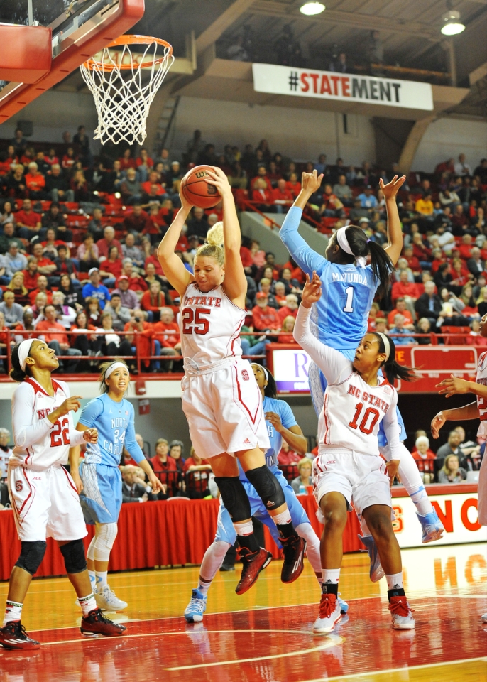 Danielle Butts (12 points, 2 rebounds) and Stephanie Mavunga (11 points, 8 rebounds) supported Allisha Gray’s efforts (10 points, 12 rebounds) for the Tar Heels, while the Wolfpack’s Len’Nique Brown (21 points, 6 rebounds) and Jennifer Mathurin complimented Dominique Wilson’s (15 points, 10 rebounds) finish.