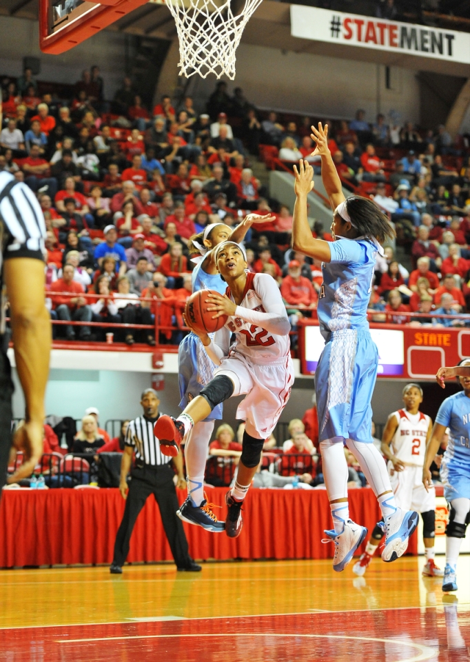 A baseline-to-baseline drive by Brown was successful as she made the layup and was fouled in the process, pulling the Wolfpack to within two once more.