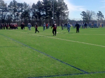 Not only did both teams practice and scrimmage together, but they had a team meal and a special guest speaker to listen to – a member of the Army attending Duke on a fellowship – Colonel Josh Rudd.