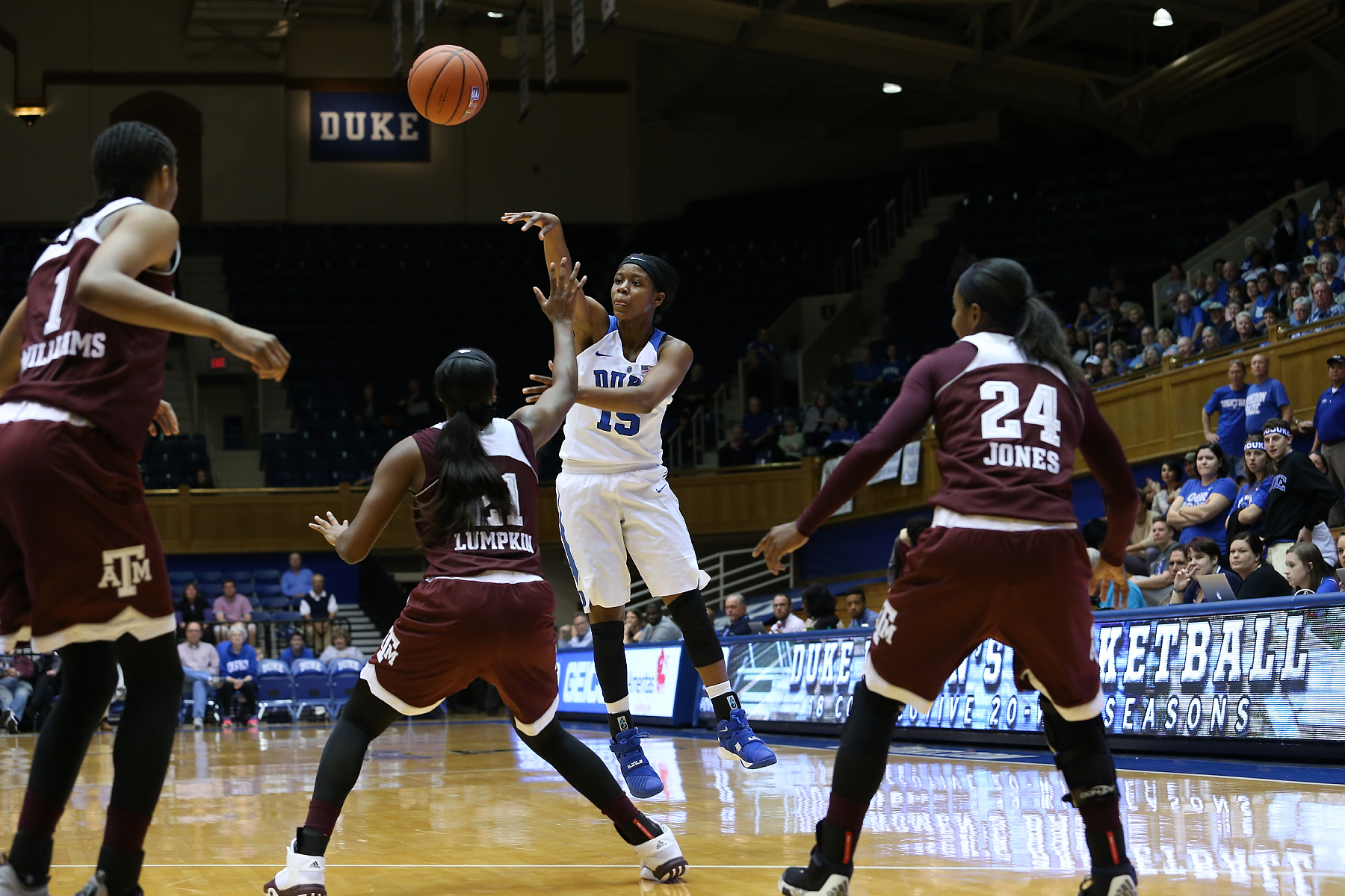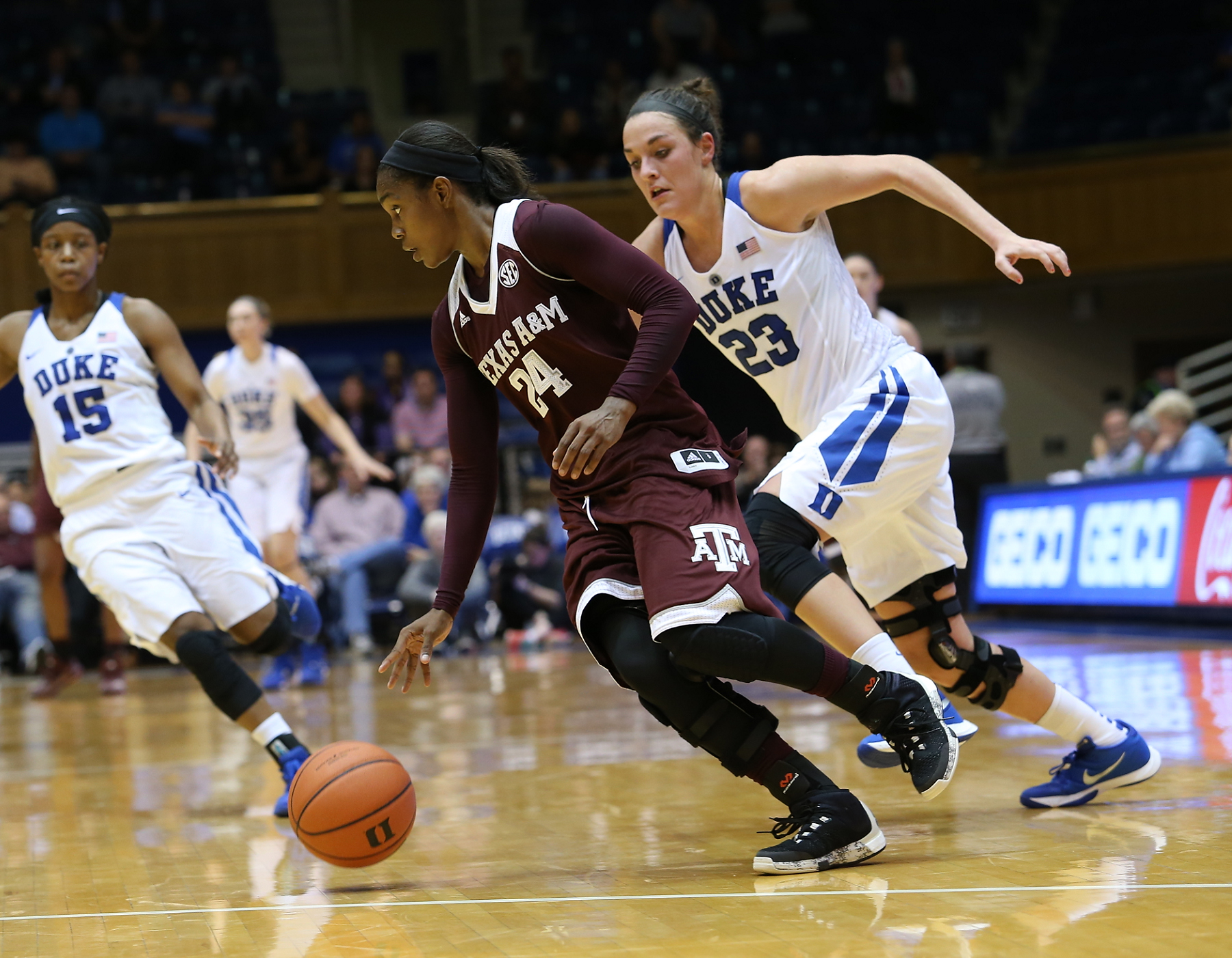 Duke focused on driving the lane to earn free throws and chipped away at the Aggies lead.