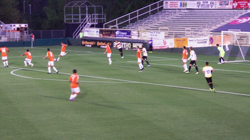 Leading 2-0 at halftime following Martinez’s successful penalty kick (27’) and Schilaswki’s tally in the 40th minute, the RailHawks defense couldn’t deny former Carolina midfielder Chris Nurse the opportunity to beat keeper Akira Fitzgerald to narrow the score to 2-1 in the 47th minute.