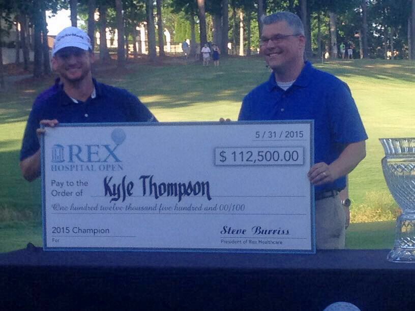 RALEIGH, N.C. – Kyle Thompson became the Web.com Tour’s first player to win the same event three times when he drained a four-foot putt to win a three-man playoff at the 2015 Rex Hospital Open that concluded play at TPC Wakefield Plantation on Sunday.