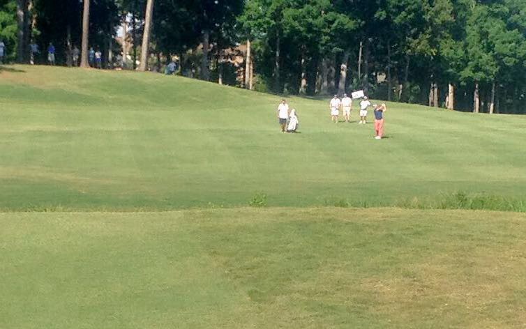 Thompson was the only one in the fairway, in a similar spot at approximately 125 yards out.